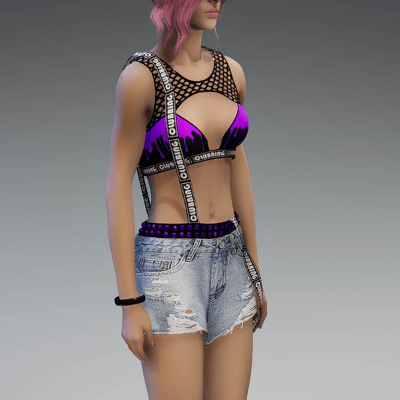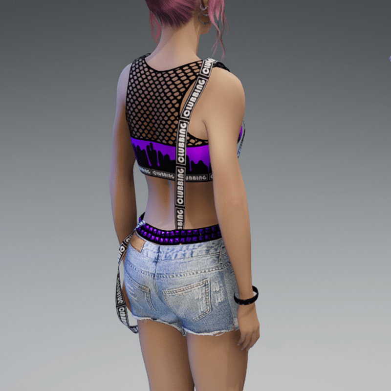 This summer party outfit comes with a fishnet-application on the top, braces, a rivet belt and some ripped denim shorts. Please feel free to use my 'siggys store' version before buying this one if you want to know how this outfit would look like on your avatar! Enjoy!