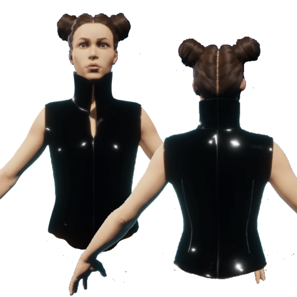 Shiny Sexy Black Hi Collar leather Detail Vest Must turn on the simulate cloth in lookbook first for best fit. Get ready for the action with this Enjoy!