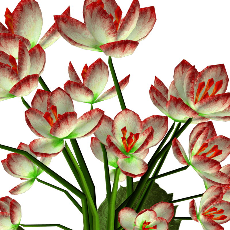 I love crocus flowers when I walk in the forest. They are usually white but my search online showed there are many colors to them. So I will make several colors as well. Crocus flowers usually have leaves like grass but in order to keep the poly count as low as possible, I made a few big leaves instead. There is no collision on this mesh so you can walk through it. To see this flower in Atlas, please visit "LovedWarrior's Ground Plants: https://atlas.sansar.com/experiences/lovedwarrior/lovedwarrior-s-ground-plants" Each petal, pollen, stalk and leaf is made by hand and placed by hand. All the textures are also made by me. Enjoy!