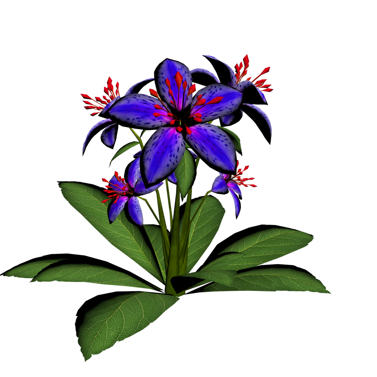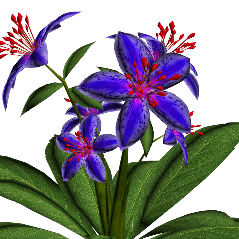 1 Lily Plant with 6 lily flowers and several leaves for your lovely gardens. Polygon count: 6440. There is no collision on this so you can walk through it. I have many colors. To see this flower in Atlas, please visit "LovedWarrior's Ground Plants: https://atlas.sansar.com/experiences/lovedwarrior/lovedwarrior-s-ground-plants" Please note that all my flowers are 100% detailed mesh meaning no flat planes with flower pictures pasted on them. Each petal, pollen, stalk and leaf is made by hand and placed by hand. I only make grass from planes with grass pics pasted on them. All the textures are also made by me. If you have any flower or plant requests, show me a picture of a flower and I will let you know if I can make it for you. Enjoy!