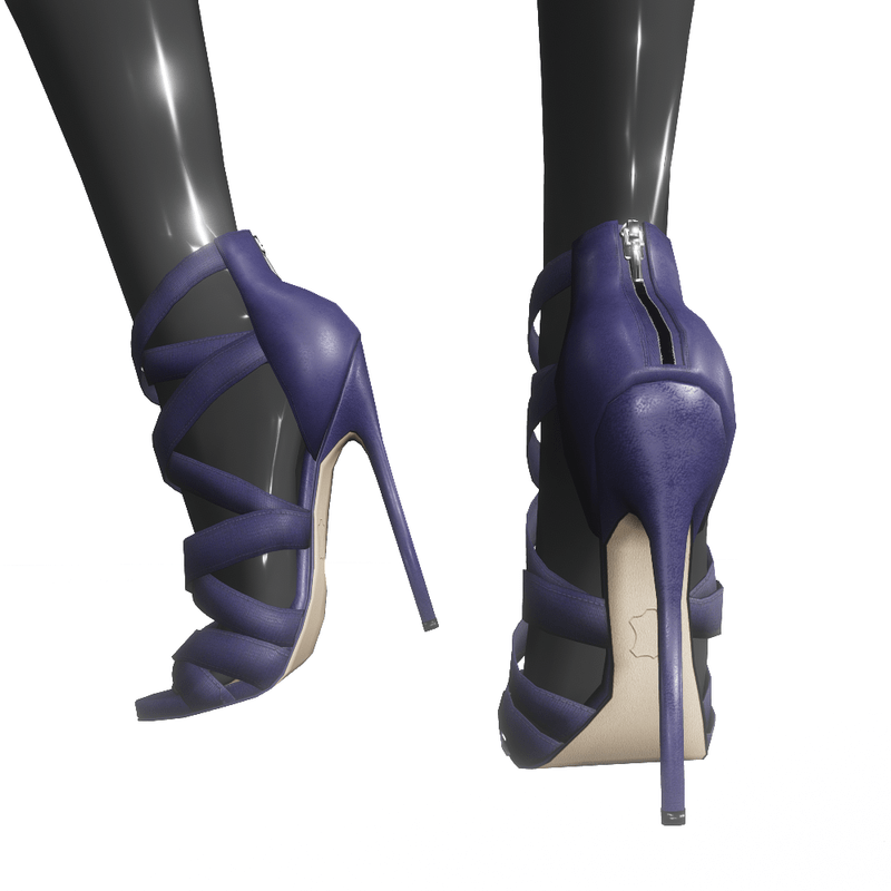 The stiletto heeled sandals feature a stretch textile and leather upper. They closure at the back with a zipper. In purple color. Get the free demo item before purchasing to check style and fitness here: https://store.sansar.com/listings/cc5291c7-8654-4bf2-bcfe-0a3d251248b2/strappy-stiletto-sandals-for-h2ai-high---demo