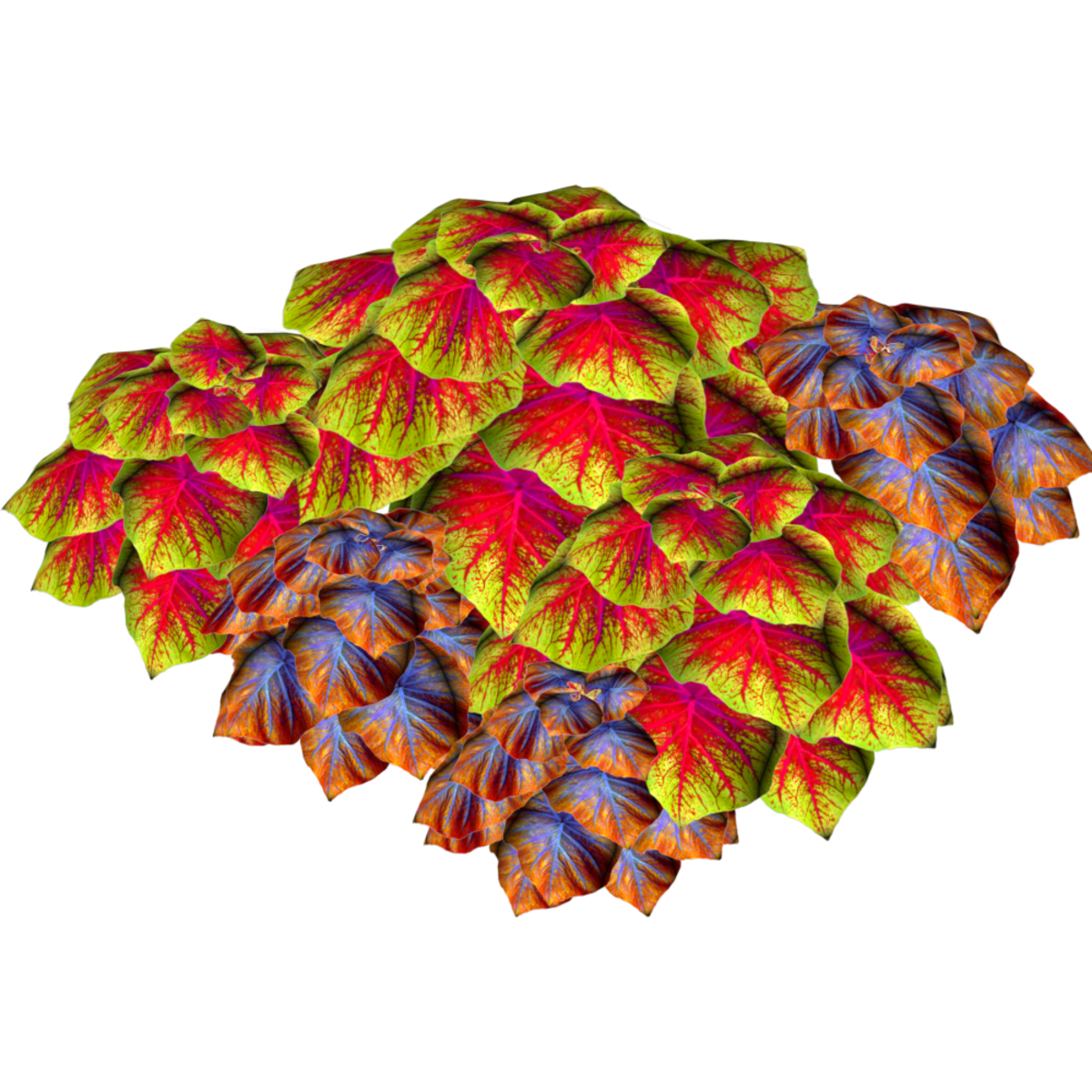This is 6 little groups of caladiums mixed together to give a natural look as 2 different caladium plants grown together. Polygon count: 7656. There is no collision on this so you can walk through it. I have many colors. To see this flower in Atlas, please visit "LovedWarrior's Ground Plants." Please note that all my flowers are 100% detailed mesh. Each petal, pollen, stalk and leaf is made by hand and placed by hand. All the textures are also made by me. If you have requests, show me a picture of a flower and I will tell you if I can make it for you. Enjoy!