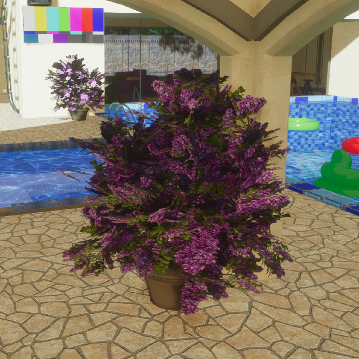 Lilac bush in round planter. * Can be seen in world at The Maple Villa https://atlas.sansar.com/experiences/robin-1731/maple-villa