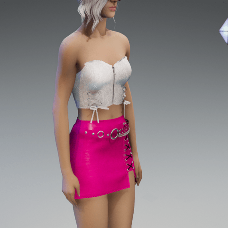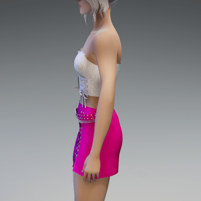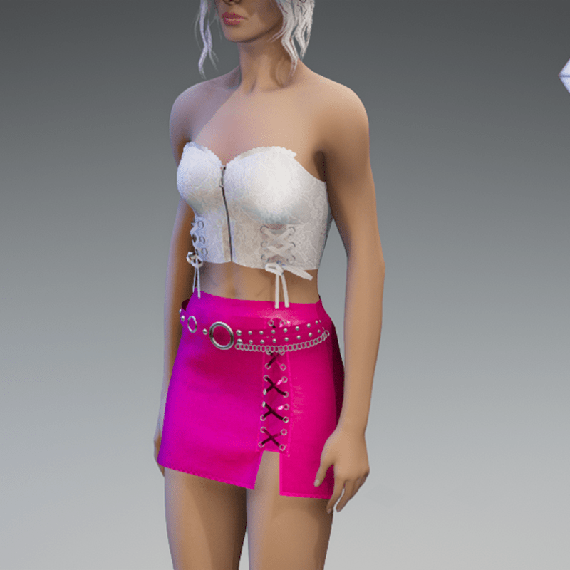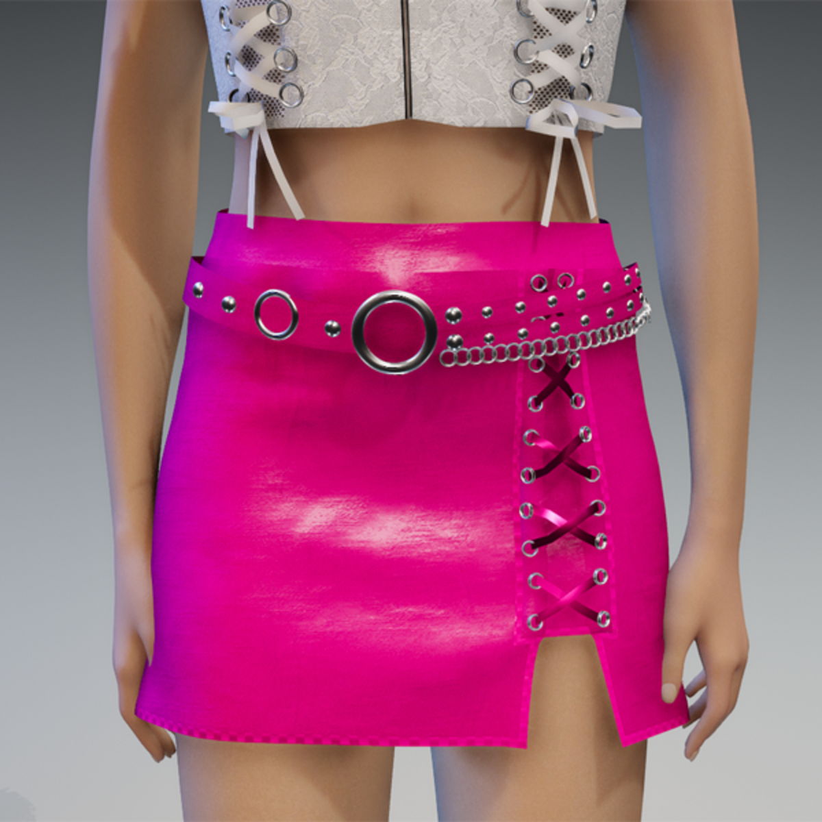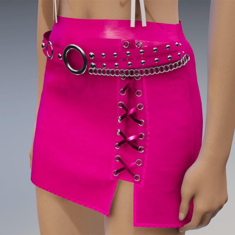 This leather mini skirt comes with some lacing on the front and a front-belt-application with lots of rivets and a chain. Enjoy! <3
