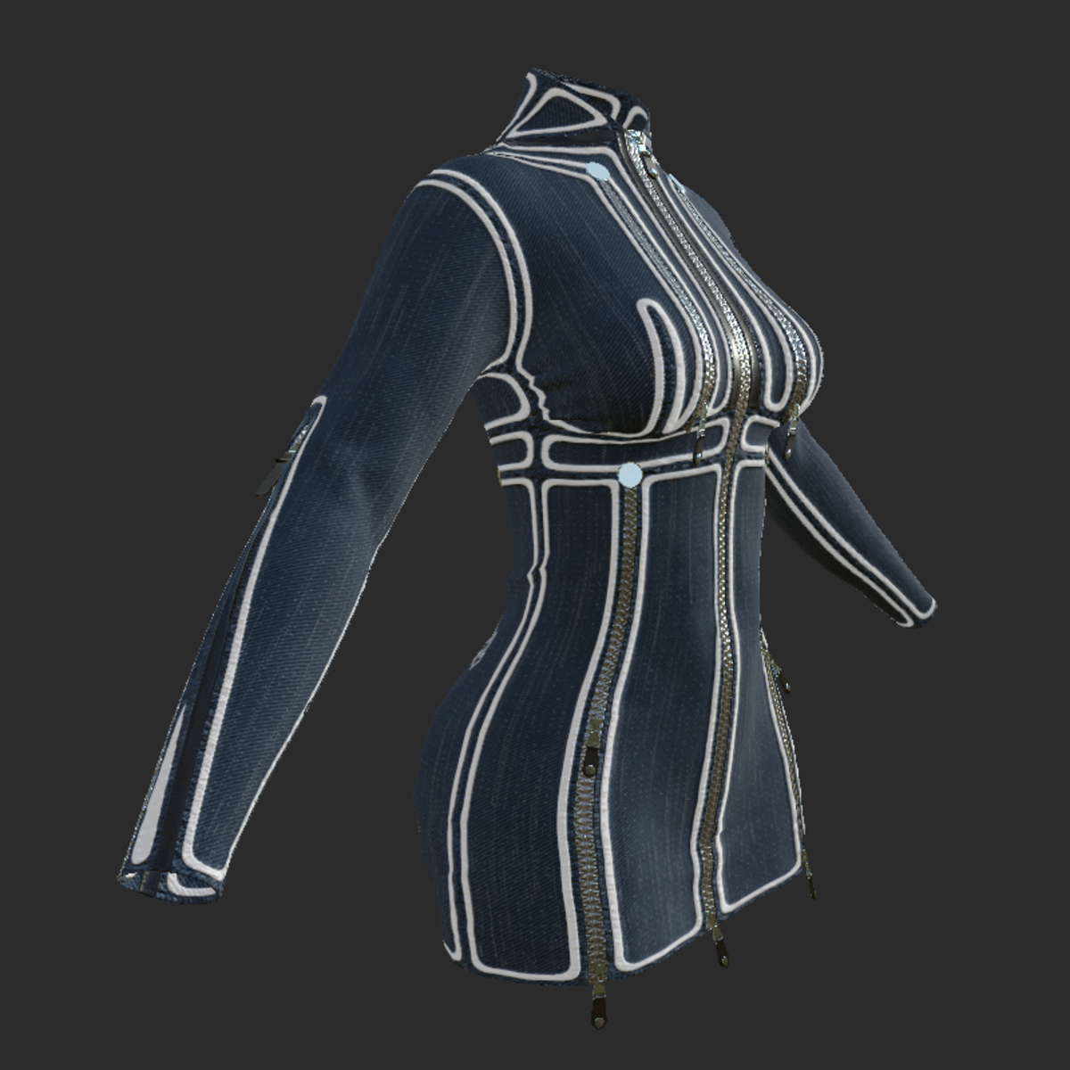 This garment is created in Marvelous designer so you can adjust it to look as you like. come with 10 working zipper You can zip or unzip creating different styles fits ALL avatars in the store only a little manipulation if needed previews of annimation https://gyazo.com/f929456f49d35205a9583f091fe5c728 https://gyazo.com/b9ed1fea3f4a205ceb056d0aaf45ff00 https://gyazo.com/d036b577c5fbc14f55307990d865bd4c For any problem, or suggestion contact me. @ jamal-7001 Thank you
