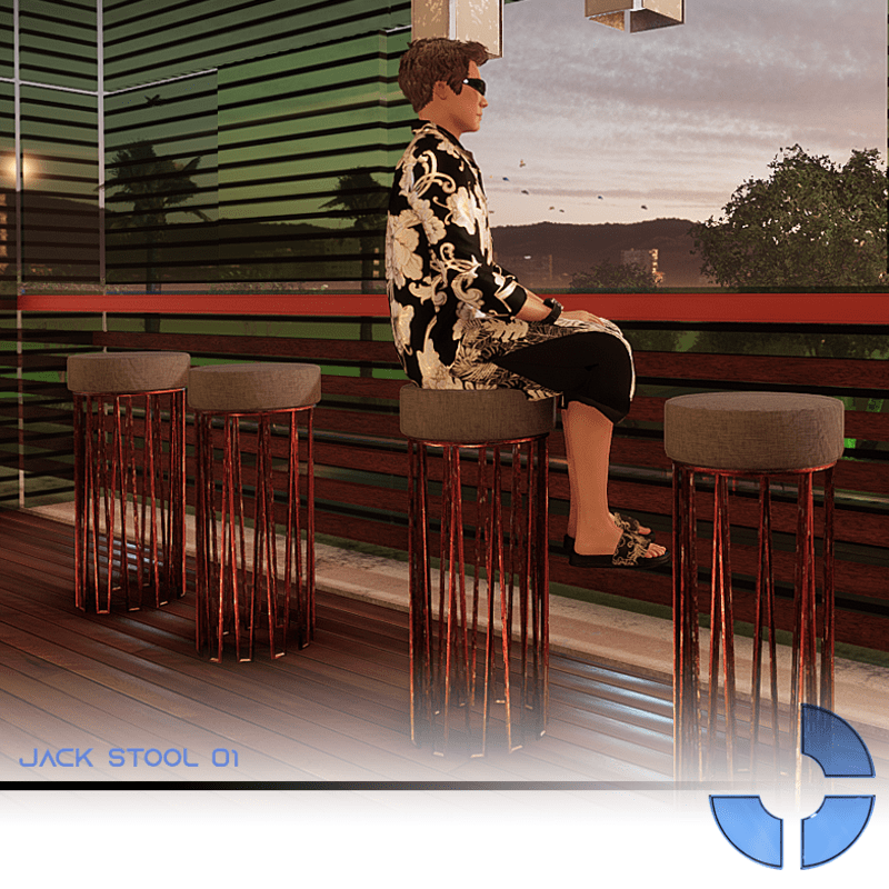 A Modern Stool of linen and cooper. Low Poly and PBR textures. You can change the color of cushion.