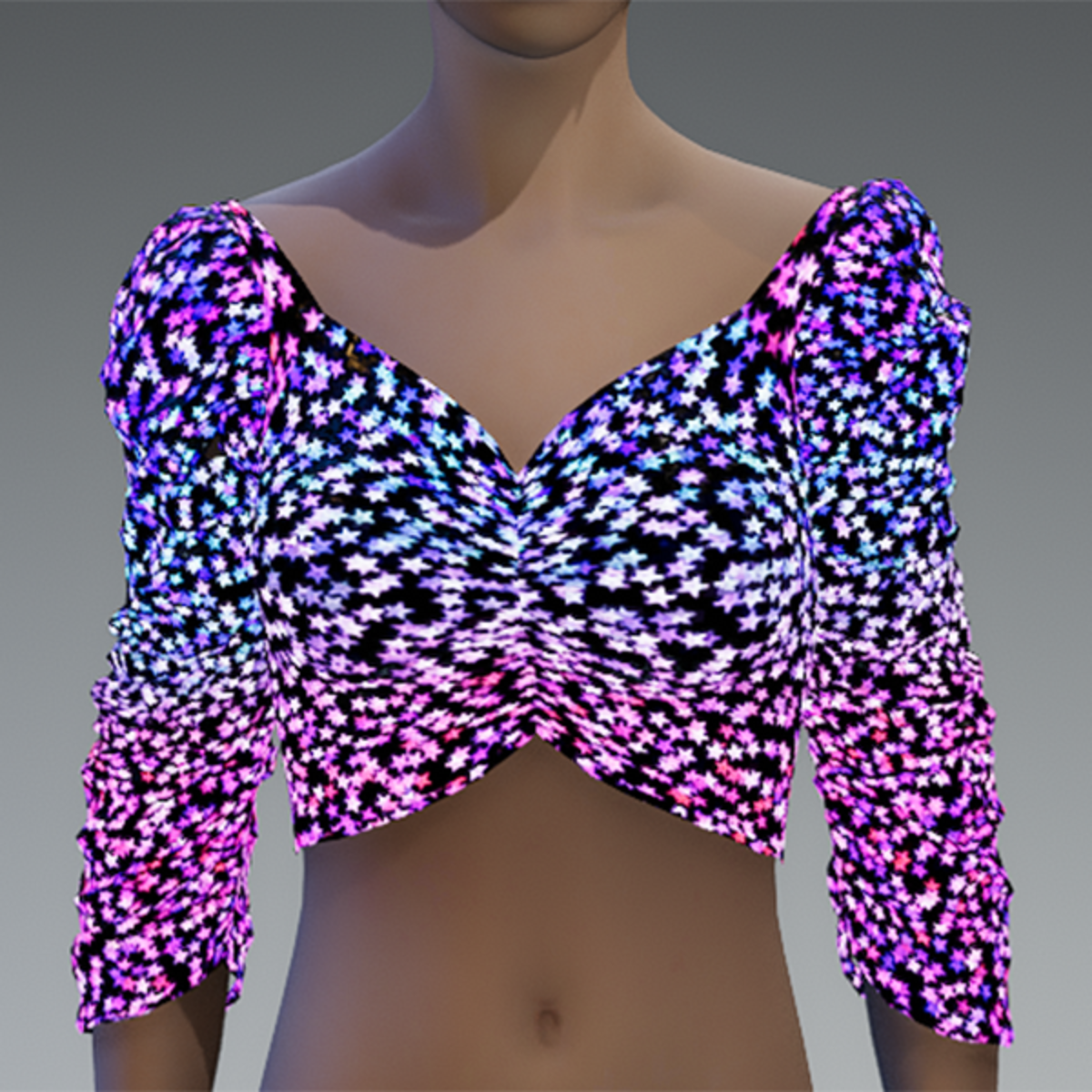 Emissive stars ruched puff sleeve top Sleeves tend to fall off shoulders when adjusting the clothing.
