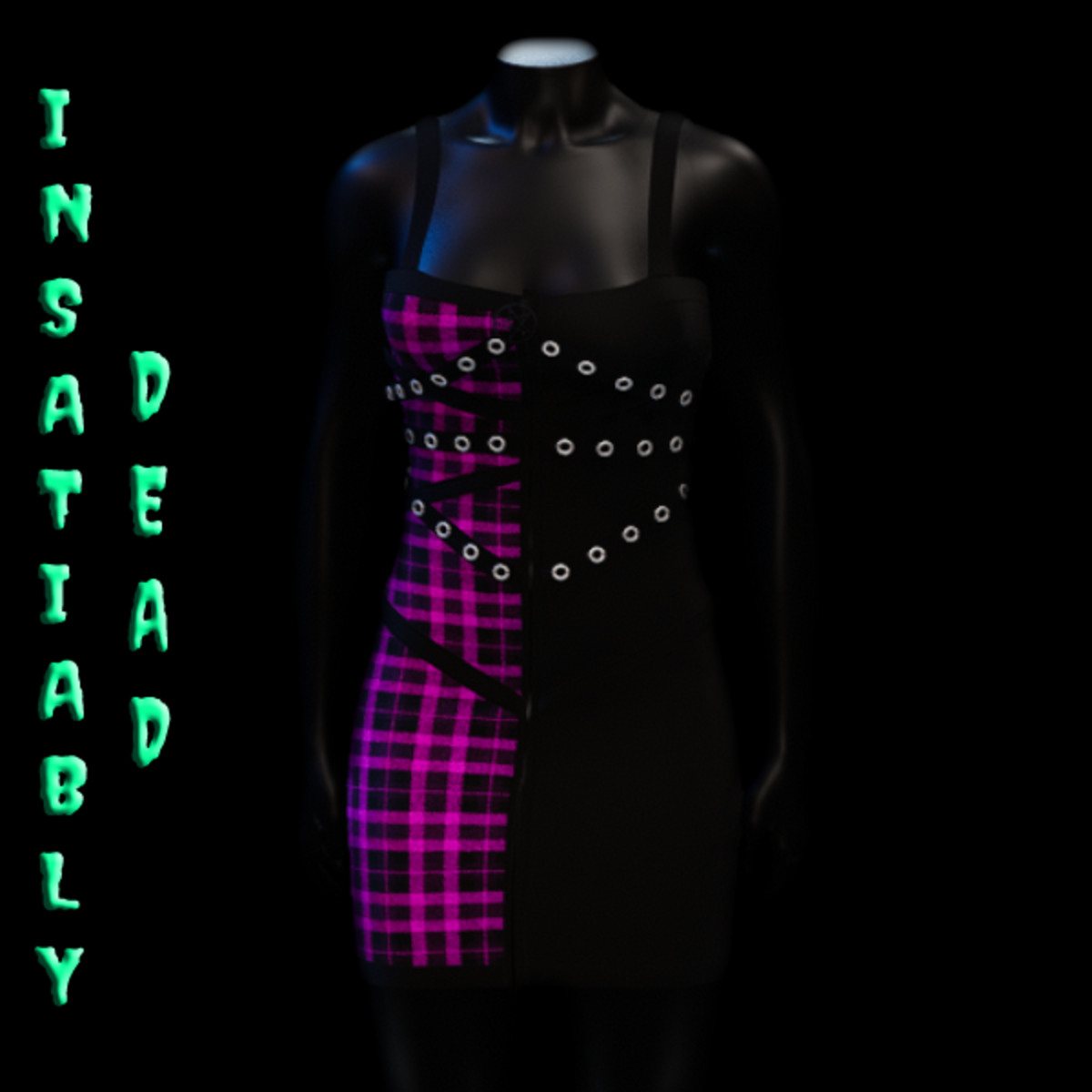 STRAPPED DRESS IN TARTAN PATTERN WITH BLACK PENTAGRAM ZIPPER [PINK]. !!!SIMULATE GARMET AND ADJUST, THEN EXIT AND RE-ENTER SIMULATE GARMET TO RESET LOOPS IN PLACE IF FLIPPING OCCURS!!! CREATED IN MARVELOUS DESIGNER WITH AVATAR 2.0. ADJUSTMENT MAY BE REQUIRED! FITTING INSTRUCTIONS CAN BE FOUND BY GOING TO THE LINK BELOW. https://help.sansar.com/hc/en-us/articles/115005693363-Fitting-Marvelous-Designer-clothing-to-your-avatar PLEASE RATE AFTER BUYING! IF ANY ISSUES OCCUR PLEASE CONTACT TEAGAN BROKKEN FOR ASSISTANCE. THANK YOU! <3 <3 GET INSATIABLY DEAD <3