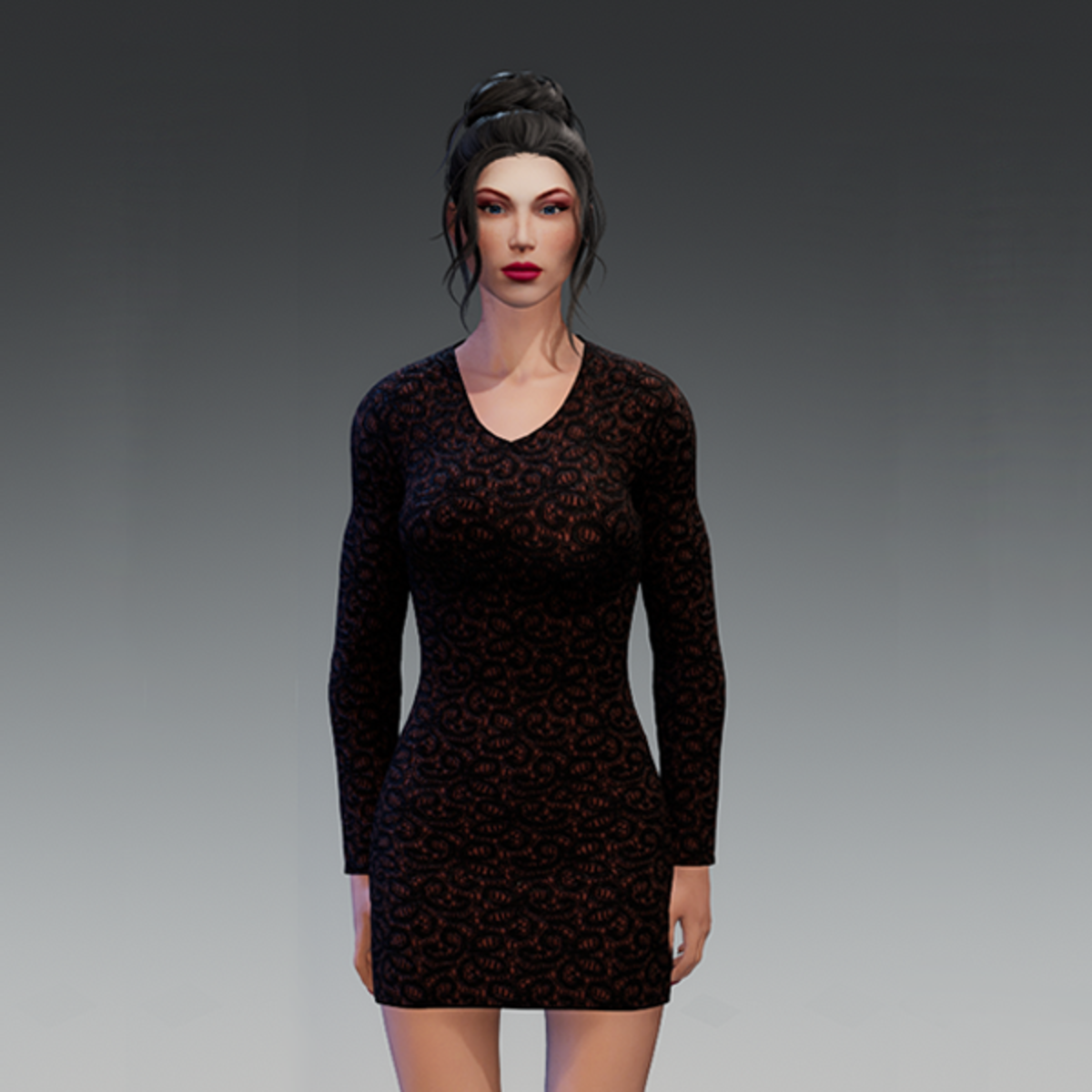 L.F. ELLA BLACK LACE DRESS/TOFFEE worn by my avatar "Morgane" (by M.P.P.) her skin is "porcelaine". This dress isn't transparent. This item is made with Marvelous Designer, you can ajust this item for a perfect fit. Other colors and You can see this garment in my mainstore : https://atlas.sansar.com/experiences/marine-1972/lipstick-fashion-par-marine