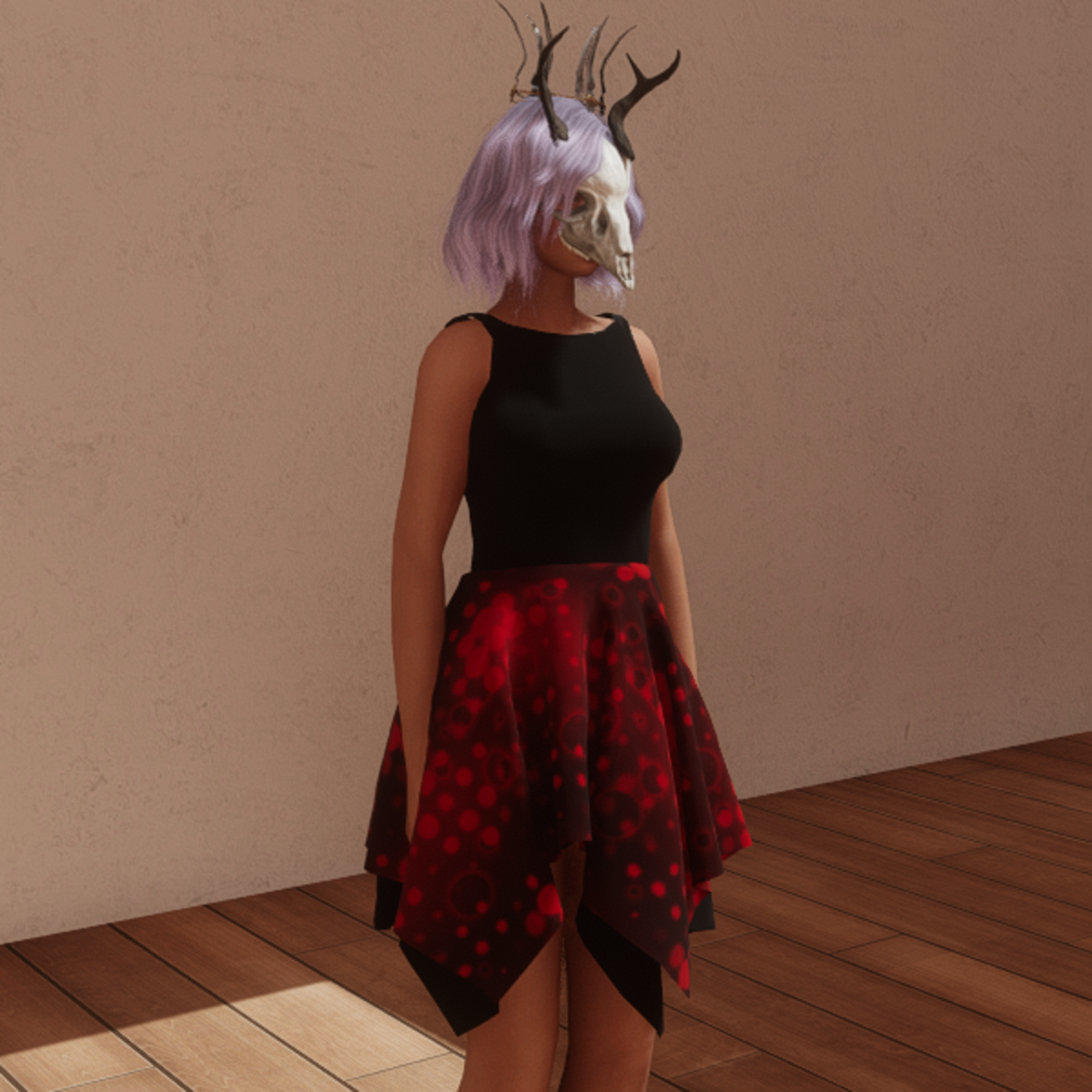 Cute, 2 layer dress gives some nice lift in the back. Black and red color. Tested on Alina avatar by Cora. Made in Marvelous Designer so you can adjust as needed.