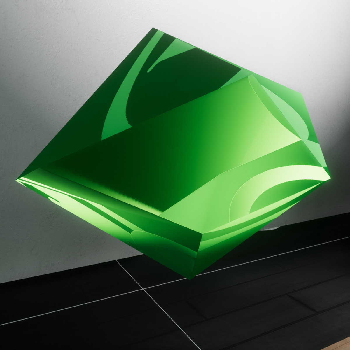 It is a green metallic sculpture disrupting the basic form and vjcuba logo