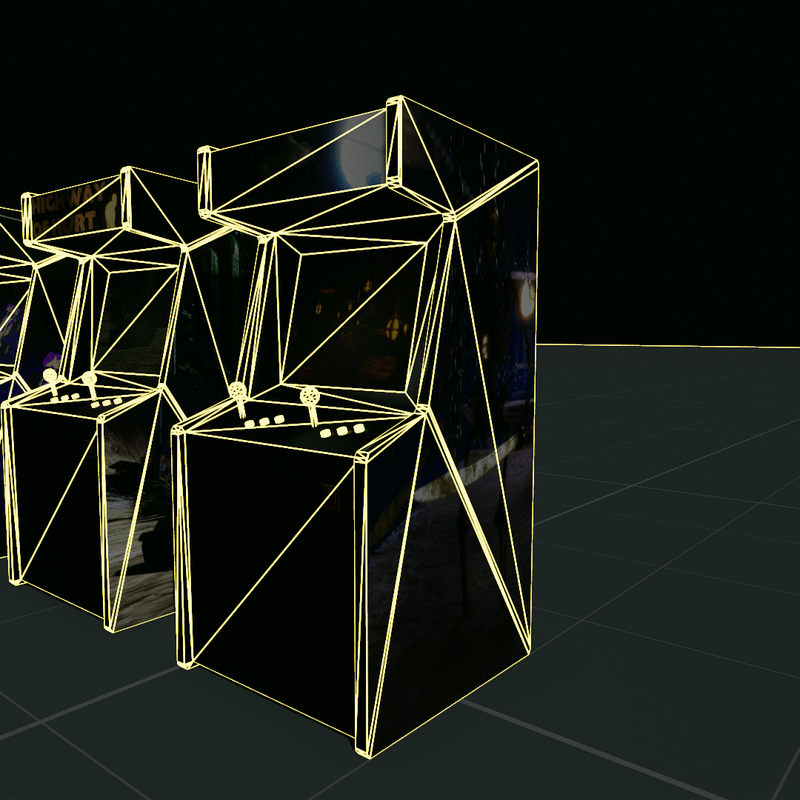 Optimised arcade cabinets. Scripted teleporter (click > dialog). Collision. 632 tris. 5.1 MB. Baked PBR materials. Separate material slot for the screen (4:3). Editable.