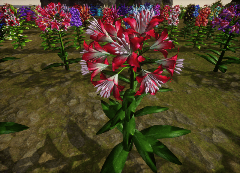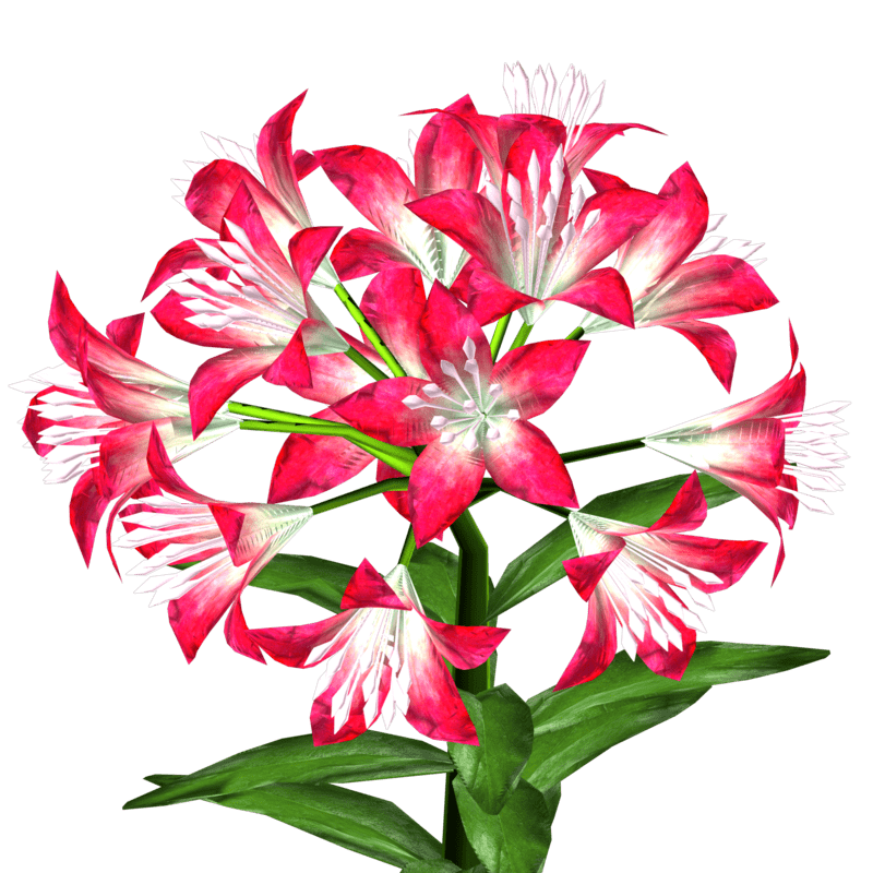 1 Trumpet Lily Plant with about 14 blooming lily flowers and several leaves for your lovely gardens. Polygon count: 15480. There is no collision on this mesh so you can walk through it. I have many colors. To see this flower in Atlas, please visit "LovedWarrior's Ground Plants: https://atlas.sansar.com/experiences/lovedwarrior/lovedwarrior-s-ground-plants" Please note that all my flowers are 100% detailed mesh. Each petal, pollen, stalk and leaf is made by hand and placed by hand. All the textures are also made by me. If you have any flower or plant requests, show me a picture of the flower and I will let you know if I can make it for you. Enjoy!