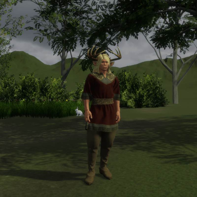 A simple pair of drawstring medieval trousers with a tapered leg in brown dyed wool. Wash twice a year in cold water and lye.