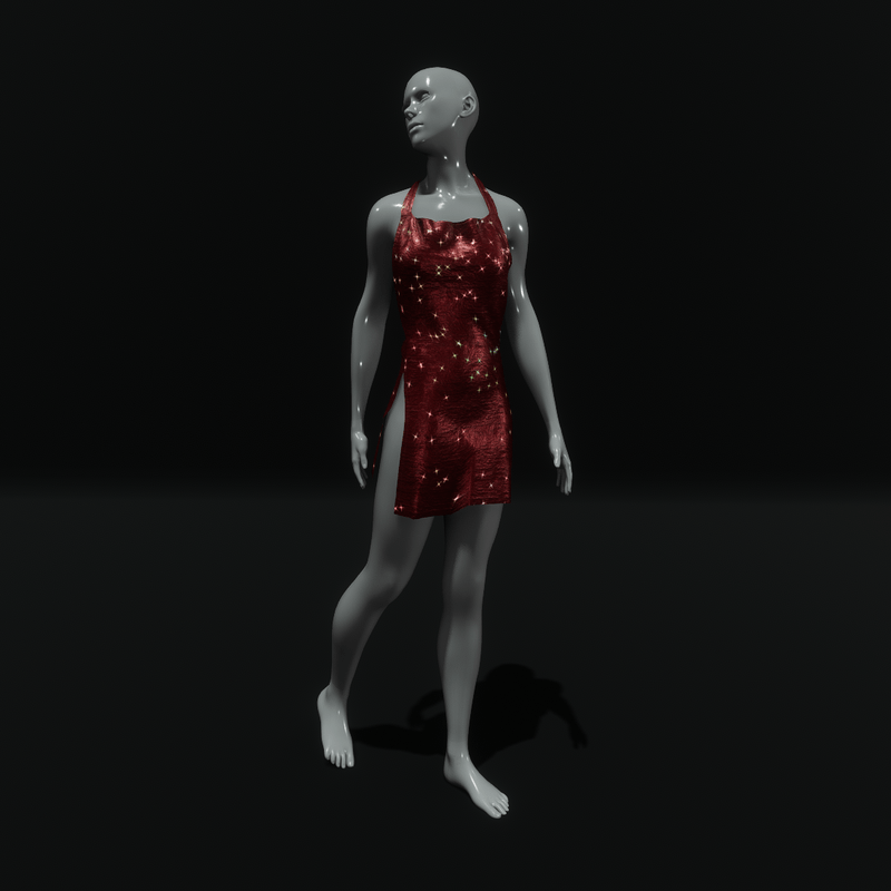 A small, sexy, glossy halter dress in red color with sparkling effect. It has an open back and high openings on both sides. Get the demo item before purchasing to check style and fitting, here:https://store.sansar.com/listings/9a75c063-3ecd-4402-a5d8-daf72c599ed8/small-sparkling-club-dress---demo