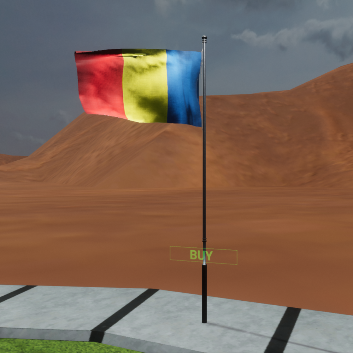 Animated flag of Romania waving in the wind. It is placed on a 4 meter pole. All permissions enabled except meterial flag. Available to view here: https://atlas.sansar.com/experiences/fernandop/full-experience-in-sales-for-exhibitions-and-events Don't forget to rate the product.