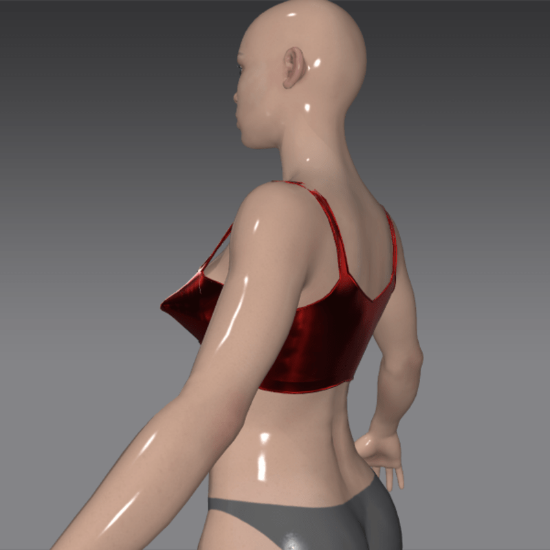 A Midcentury-cut brassière featuring the signature 1950's look of the "bulletcone" cup. In metallic red. Provocative! Very "Katy Perry" or "Dita von Teese". Hint: Best to NOT adjust this garment in Lookbook, in order to preserve the sharp, characteristic lines.