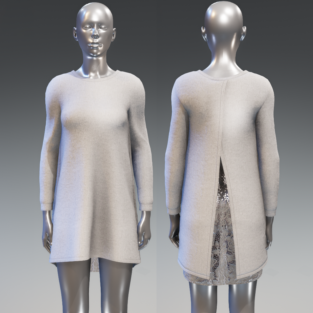 A tunic that can be worn as a short dress. It's in shift line, it has long sleeves, jewel neck and revealing back, covered with floral lace. In white colour. Get the free demo item to check the style and fit before purchasing here: https://store.sansar.com/listings/c8e36f5f-91a7-4119-969a-c038f74de940/revealing-lace-tunic---dress---demo