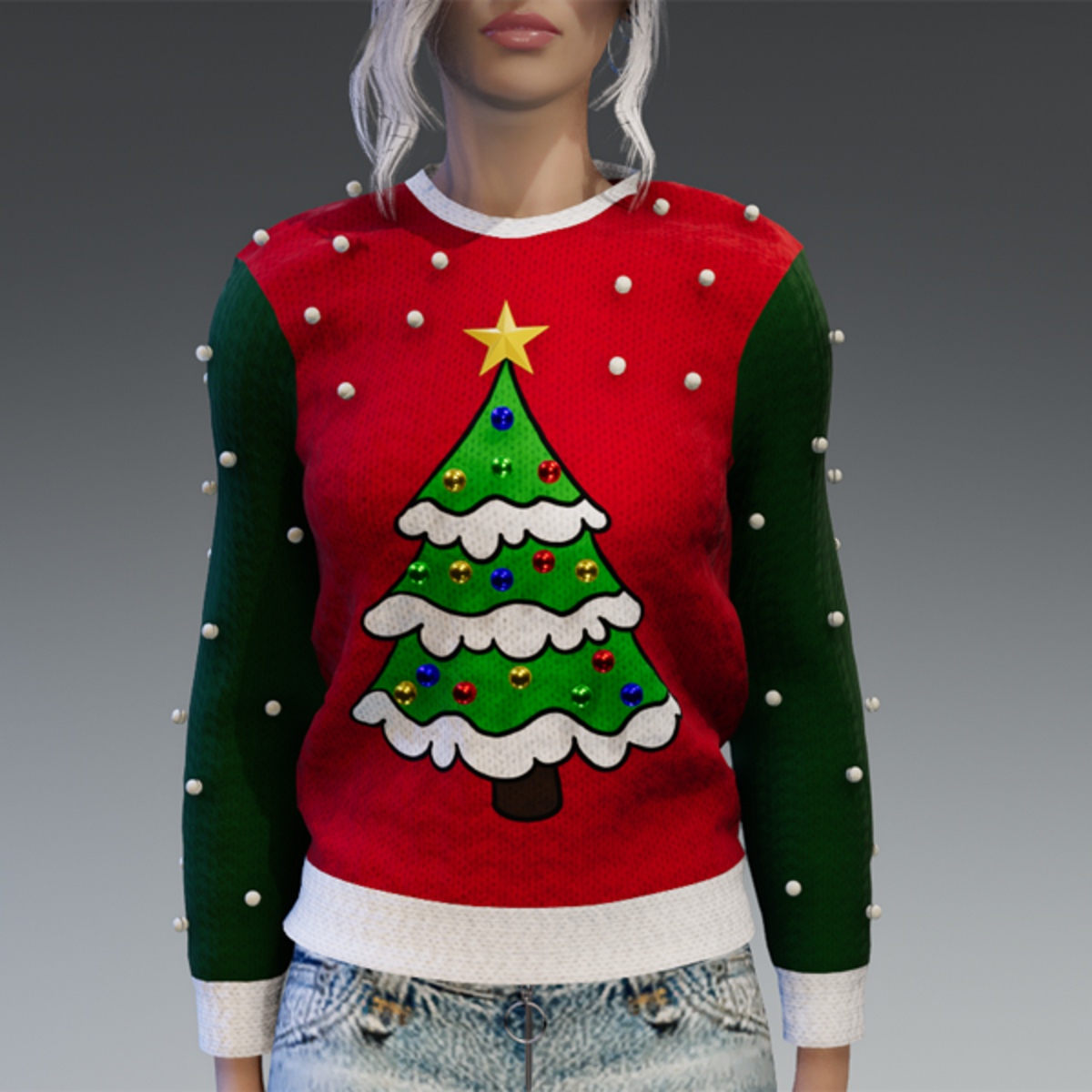 This christmas sweater comes with my christmas tree drawing which has a 3d star on the top as well as lots of colorful christmas tree balls. There are also lots of white pearls for some snowing-vibes. Enjoy! <3