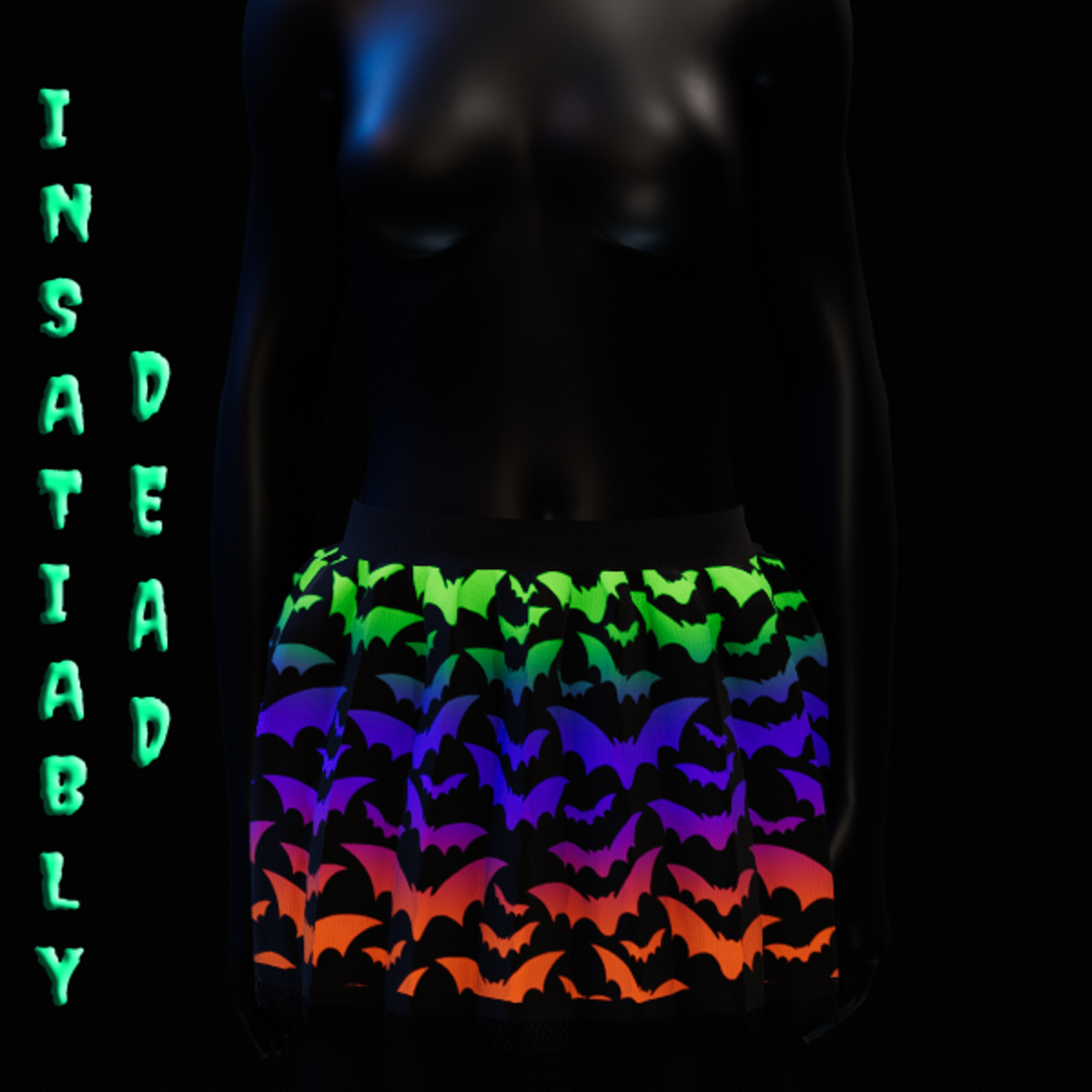 HALLOWEEN BAT PLEATED SKIRT [GRADIENT]. CREATED IN MARVELOUS DESIGNER WITH AVATAR 2.0. ADJUSTMENT MAY BE REQUIRED! FITTING INSTRUCTIONS CAN BE FOUND BY GOING TO THE LINK BELOW. https://help.sansar.com/hc/en-us/articles/115005693363-Fitting-Marvelous-Designer-clothing-to-your-avatar PLEASE RATE AFTER BUYING! IF ANY ISSUES OCCUR PLEASE CONTACT TEAGAN BROKKEN FOR ASSISTANCE. THANK YOU! <3 <3 GET INSATIABLY DEAD <3