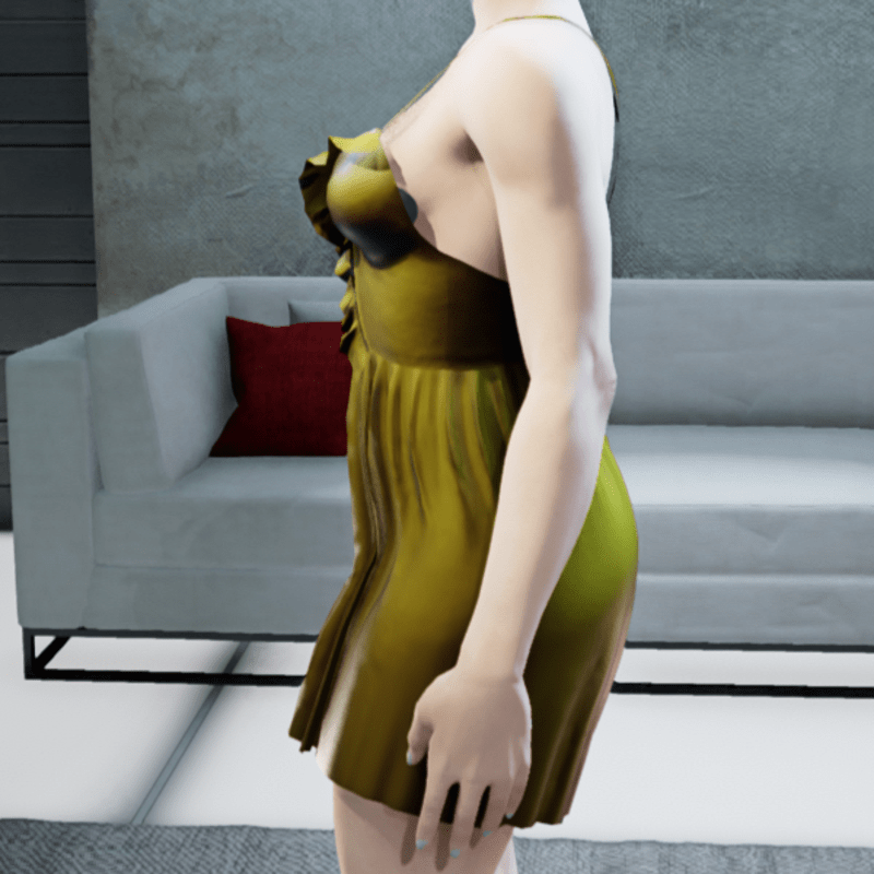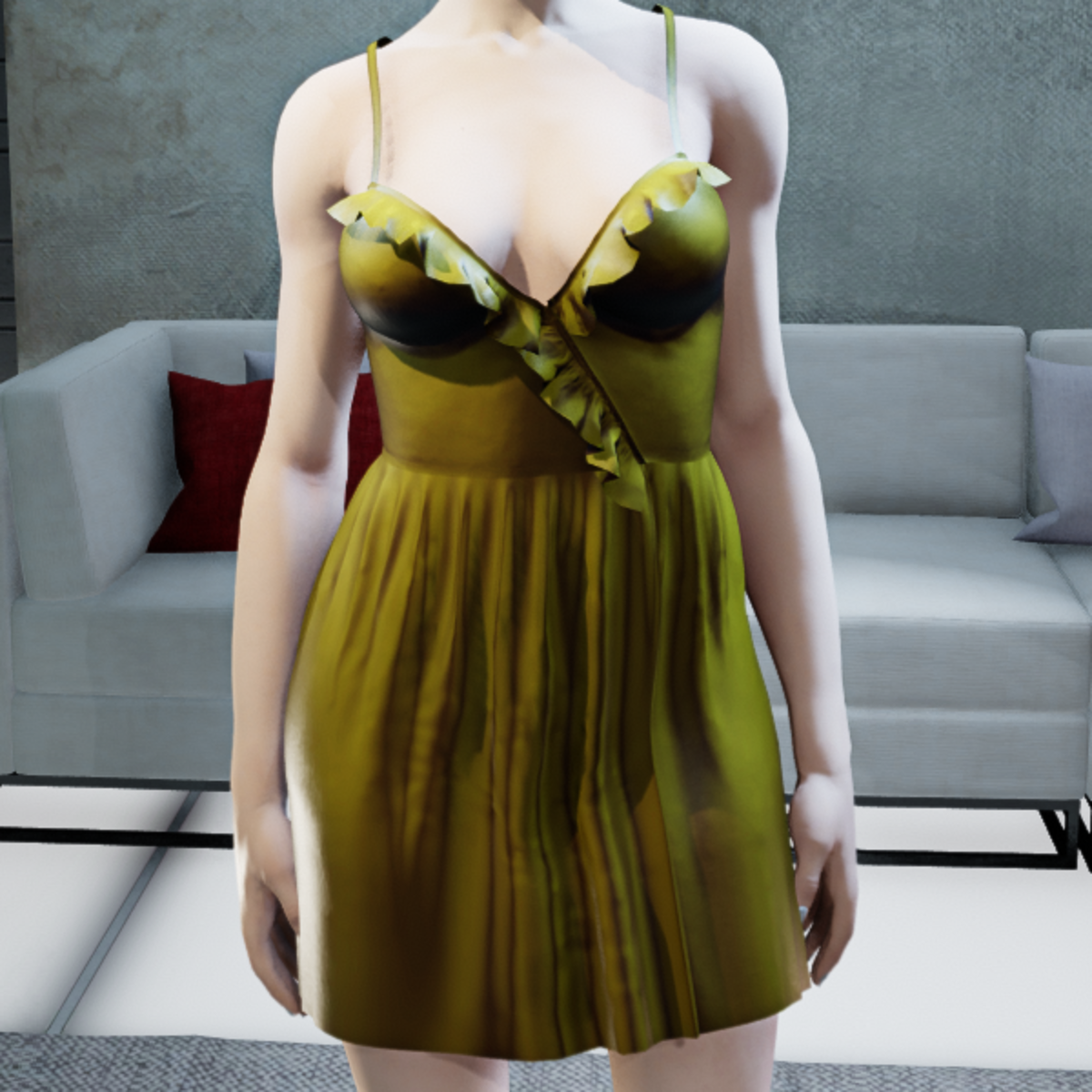 Silk dress with ruffles and spaghetti straps. This design is created with marvelous designer and the texture is manually adjusted to give it more depth. If you need a specific color, please do not hesitate and contact me! If you like this design, do not forget to rate it!
