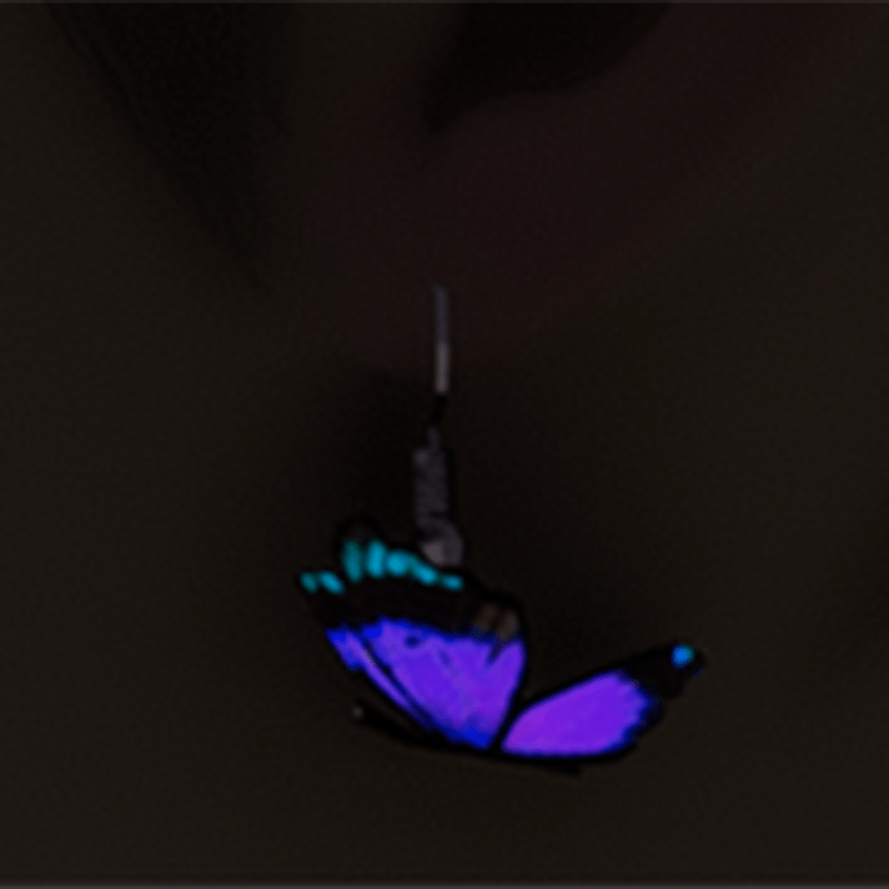 Emissive violet butterfly earrings