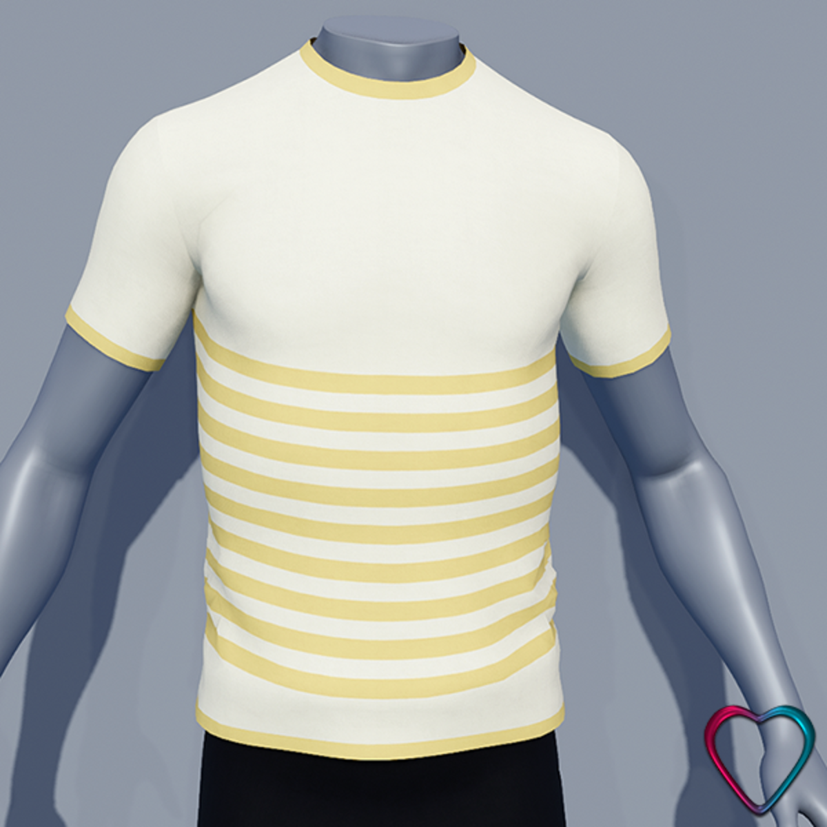 Bring subtle charm and breezy vibes to your wardrobe with this pastel-striped variation of the classic men’s tee. Each version combines a fresh white upper half with soft horizontal stripes on the torso, in shades that include coral, blush pink, lavender, baby blue, mint green, lemon yellow, warm cream, and sandy beige. Crafted in Marvelous Designer, this tee hugs the body with natural elegance. The smooth flow of fabric and fitted short sleeves are enhanced by delicate pastel contrasts that give a fresh and gentle aesthetic – perfect for springtime moods or laid-back summer looks. Fitting tip: For best results, gently stretch the fabric across the outer chest and under the shoulders in simulation. This helps avoid any body clipping. Technical details: • Available in 8 pastel stripe color combinations • Clean white base with soft horizontal lower-torso stripes • Mesh tailored for realistic form-fitting effect • Ideal for casual and fresh avatar styles For those who embrace both minimalism and softness in style. ------------------------------ Explore this creation and its color variations in my Sansar store: https://atlas.sansar.com/experiences/morganeparis/mpp-mainstore PS: I created it from scratch. I hope you like it. Enjoy and Keep Good Vibes. Hugs from Morgane.