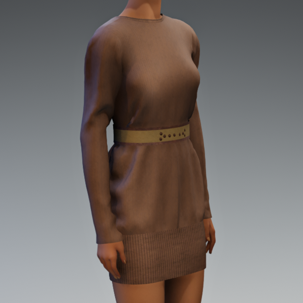 Oversized sweater dress with ribbed trim in fine knit. This version includes a two-toned leather belt with studs trim. AV 2.0 Try the demo!
