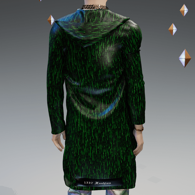 The perfect piece of apparel for festivals, parties, sporting events or even camping. This all over print hooded cloak feels like a dream. With custom printed designs, you can show off your style. All your friends and family will be jealous! 4K Texture Two side pockets Can buy in real life! Unisex Sizing Custom & Exclusive! NOTE: You may need to adjust the tee to get the preferred fit! You can adjust clothing next to the transform tool in the Worn Items Menu. Grab the cloak here: https://1337.fashion/products/green-matrix-dreamers-sherpa-cloak