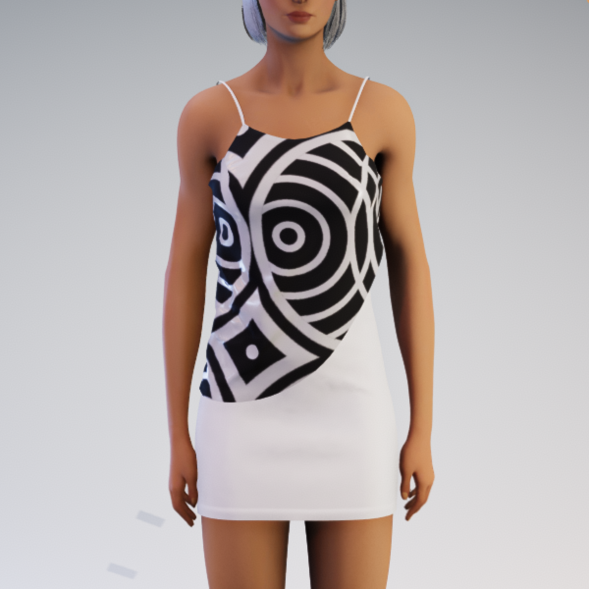 Layered Spaghetti Minidress - White and Black Circles