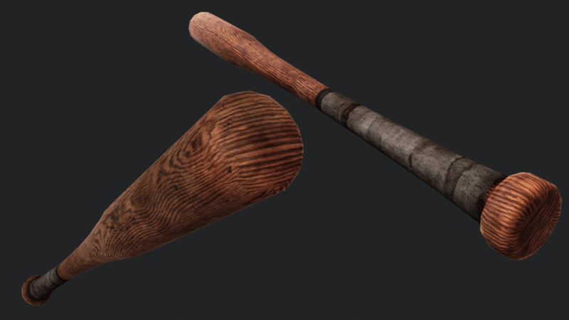 Baseball Bat Weapon 01 Very Detailed Baseball Bat Weapon, with a Scratched Dark Wood Texture. perfect for environments, or for use as a Weapon or Sport Equipment Model is unwrapped, and UV Mapped using Photoshop. Diffuse, Specular, Normal Maps. 2048x2048 Texture Maps PNG Mesh Collision Added Low Poly Triangles 586 Polys 295 Verts No scripts, only Mesh and Textures