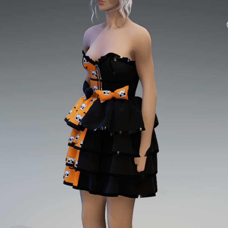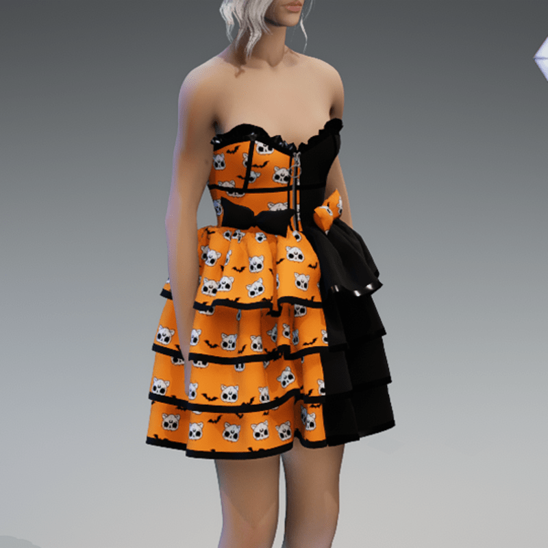 Lolita Dress V2 'Deadcats & Bats' with Bows in Orange