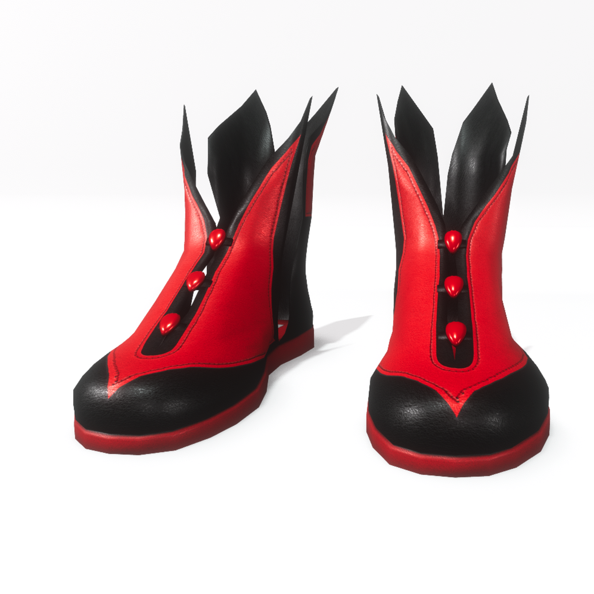 A unique pair of male shoes in black and red colour with leather "wings" and pearl buttons. Ideal for the Halloween, costume parties or an eccentric appearance. Get the free demo item to check fit and style before purchasing here: https://store.sansar.com/listings/f3e19de9-9159-4af8-89f9-99edb5c59545/warlock---wiccan-shoes-for-male-avatar-2---demo