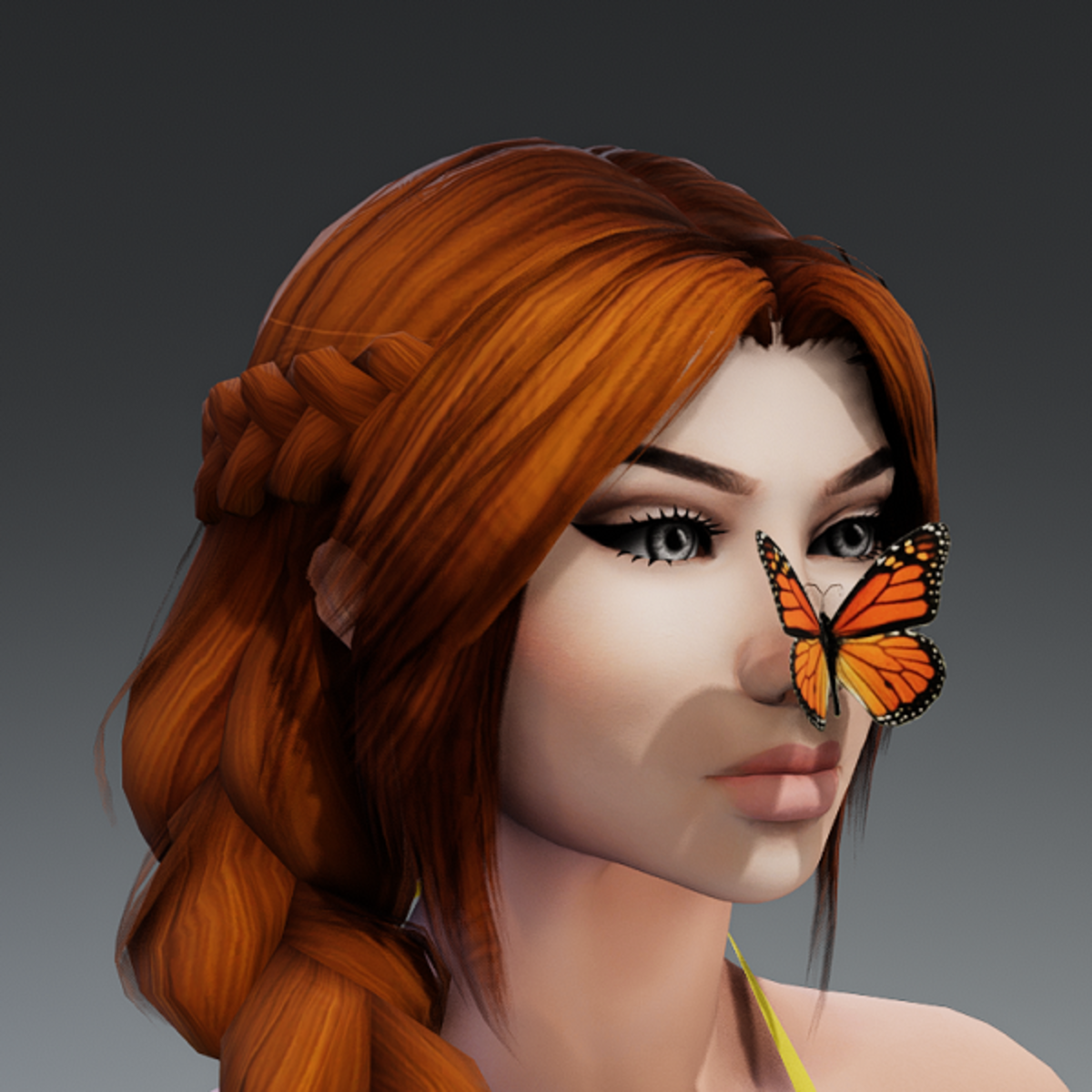 3D butterfly on nose. A little friend for your adventures.