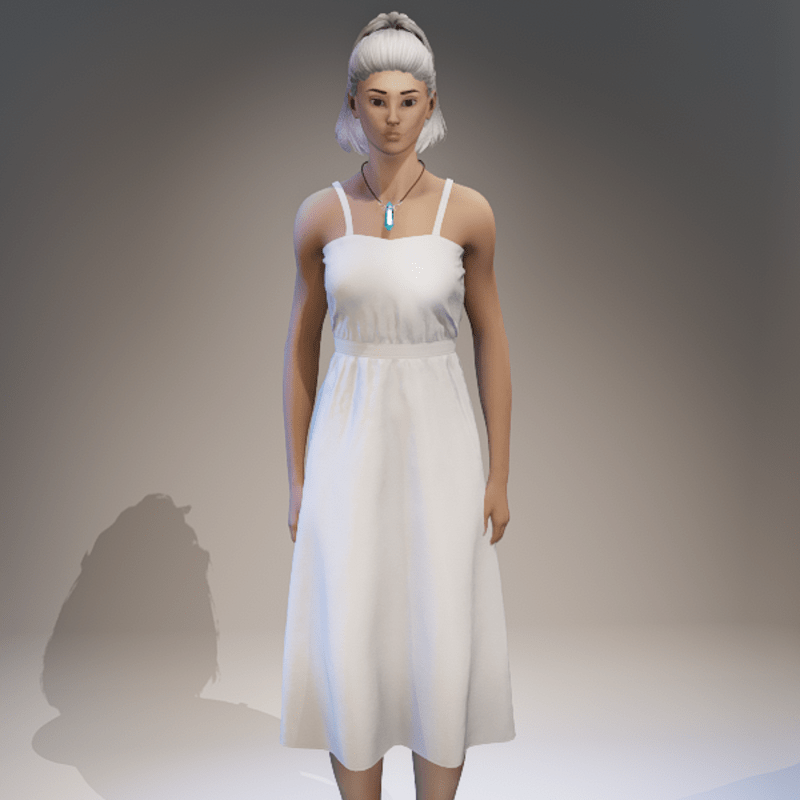 A simple strap dress, light and airy perfect for those hot summer days. Fitted to the default female framed avatar. A marvelous designer clothing item therefor is able to be simulated and transformed in order to fit many different avatar body shapes. Other colours available on store. Contact "TheNick-1981" through Sansar or Sansar discord if you need re-rigging, a custom design or if there is a problem etc.