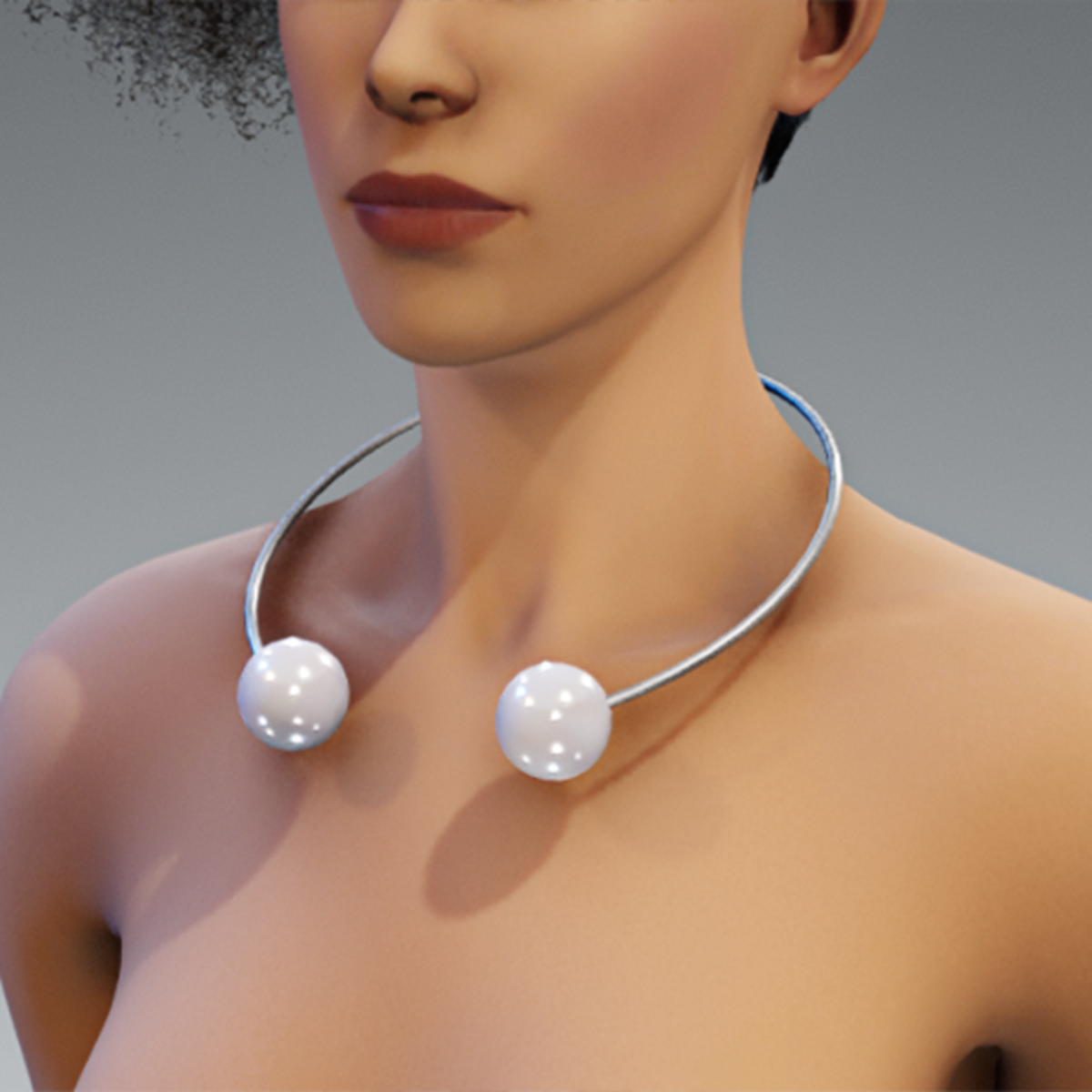 A simple but elegant pendant in modern design. It's made with silver metal and has two big sphere pearls.