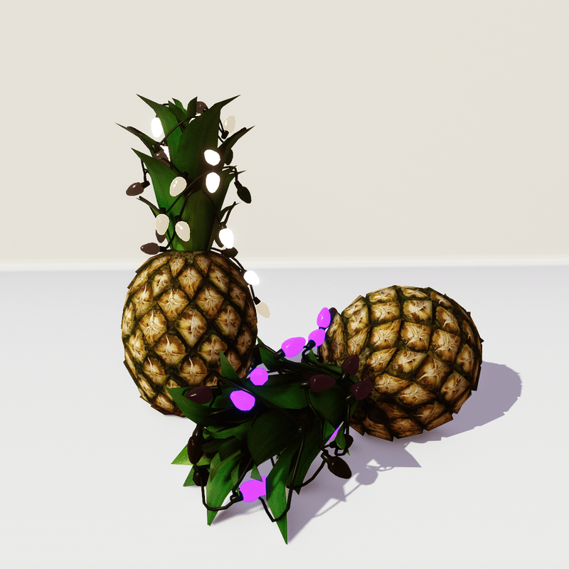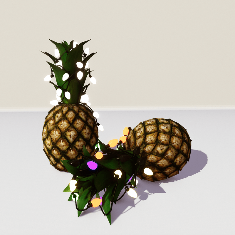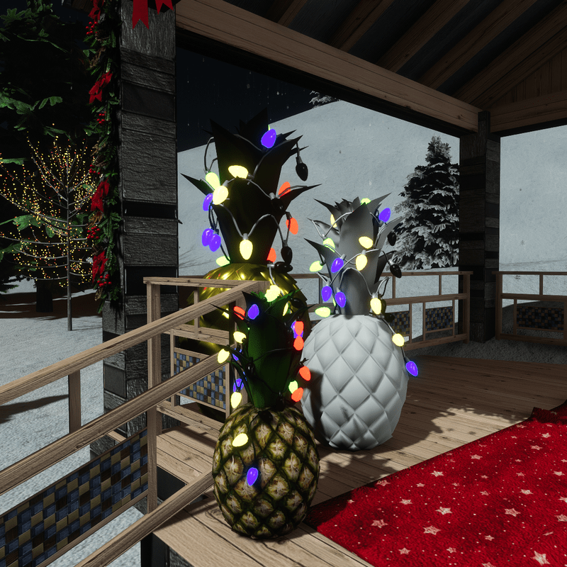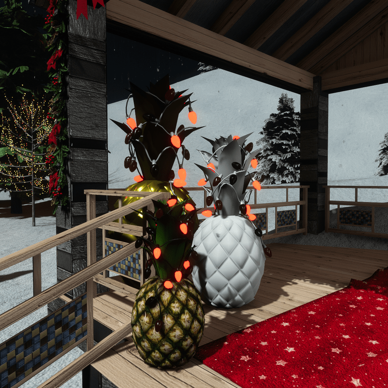 For festive Christmas decoration, this pineapple with a cord of running lights wrapped around the foliage, is the best choice! In small or bigger size and realistic texture it's the perfect holiday decor for interior or exterior areas (garden, deck, patio). The lights have a long lasting playing program, with many color alternations. Take a closer look here: https://atlas.sansar.com/experiences/luise/terra-di-luci