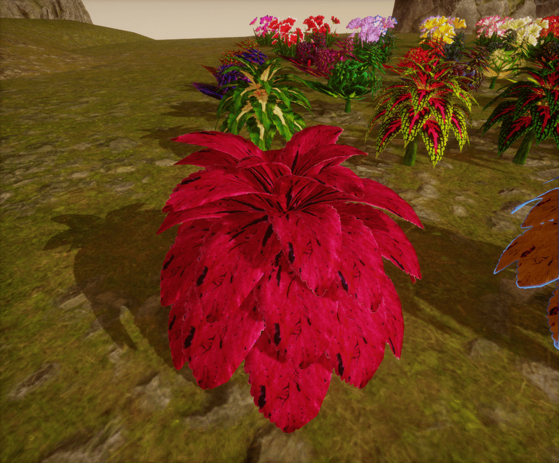 This is my second version of coleus plants. I always loved Coleus plants. I love all the colors of those gorgeous leaves. So, you will find many colors of coleus plants from me. There is no collision on this mesh so you can walk through it. To see it in Atlas, please visit "LovedWarrior's Ground Plants: https://atlas.sansar.com/experiences/lovedwarrior/lovedwarrior-s-ground-plants" Each petal, pollen, stalk and leaf is made by hand and placed by hand. All the textures are also made by me. Enjoy!