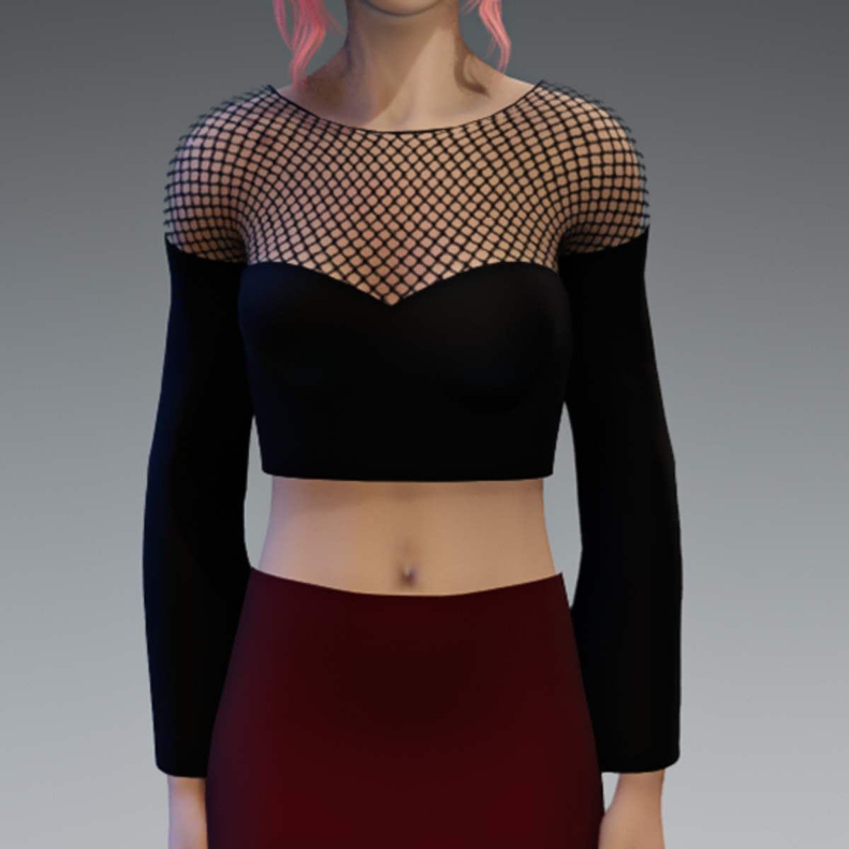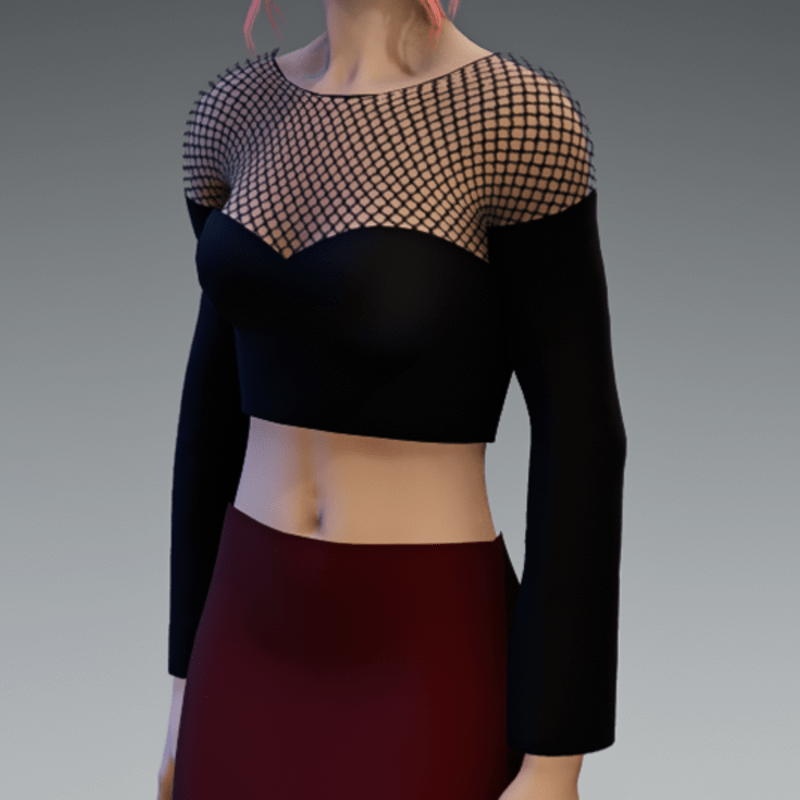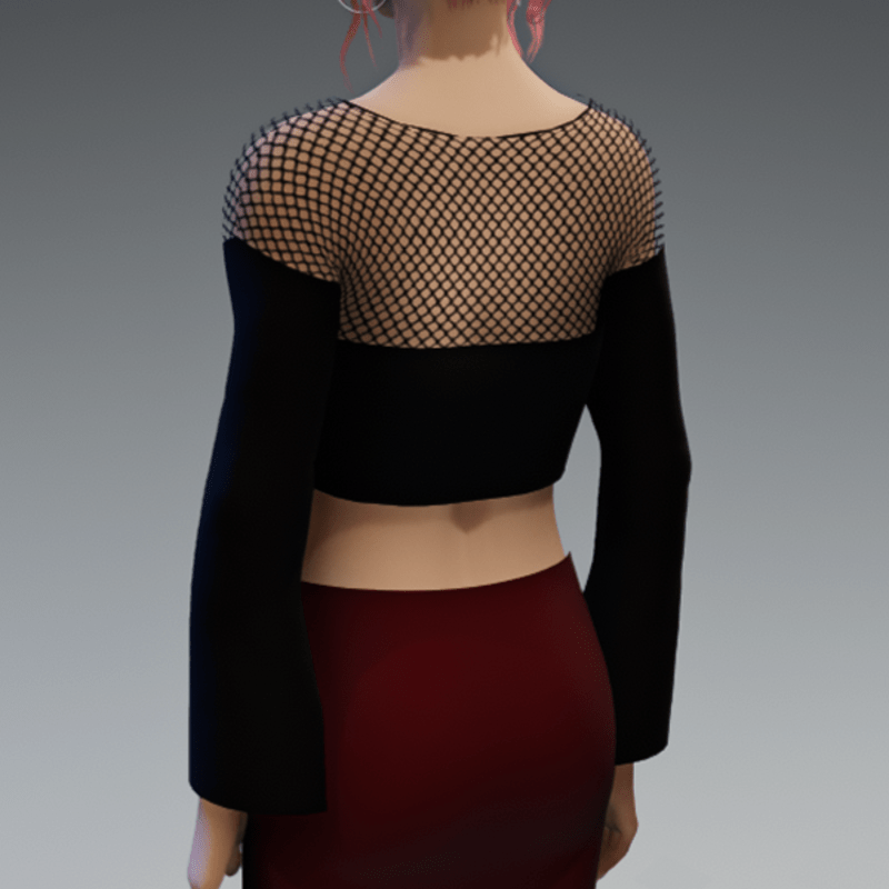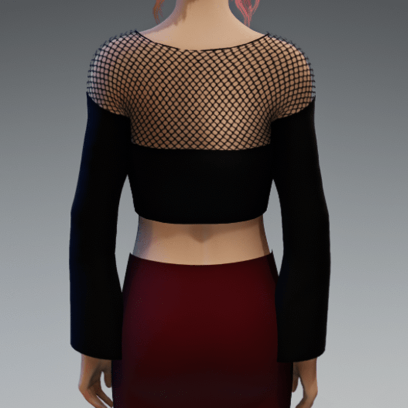An elegant crop top in black and a fishnet application on the top for some witchy style. If you are interested in the full outfit showing in the images, feel free to also check my "business skirt in dark red". Enjoy!