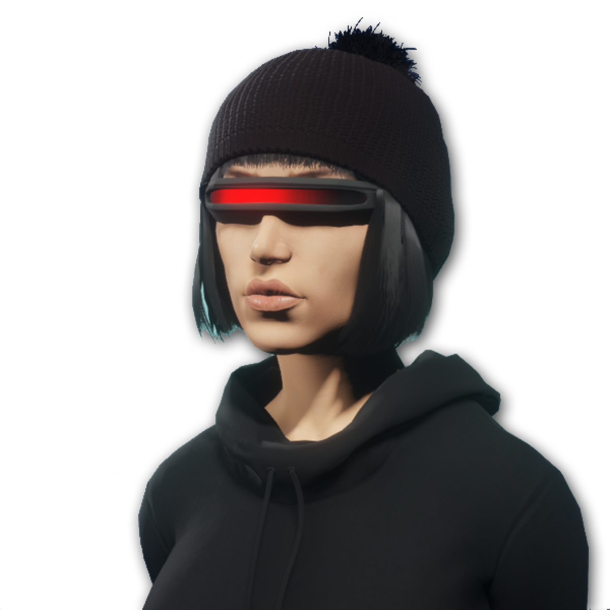 Cyborg laser glasses for female avatar, with texture animation.