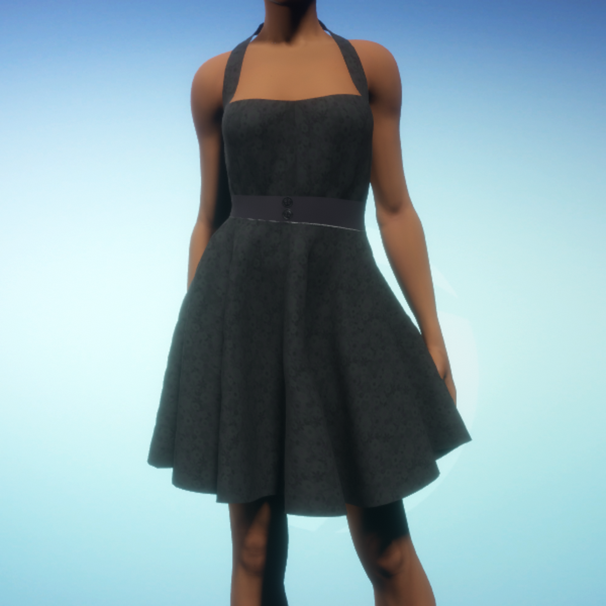 Vintage halter-top summer dress in a flowery print and a black belt. By Sweet Distractions