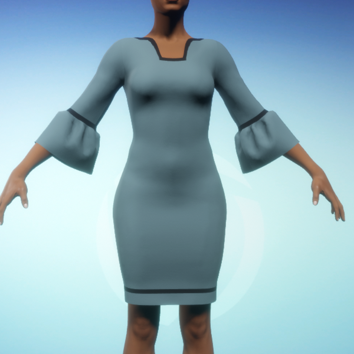 - Bell-sleeve Dress - Teal and Black