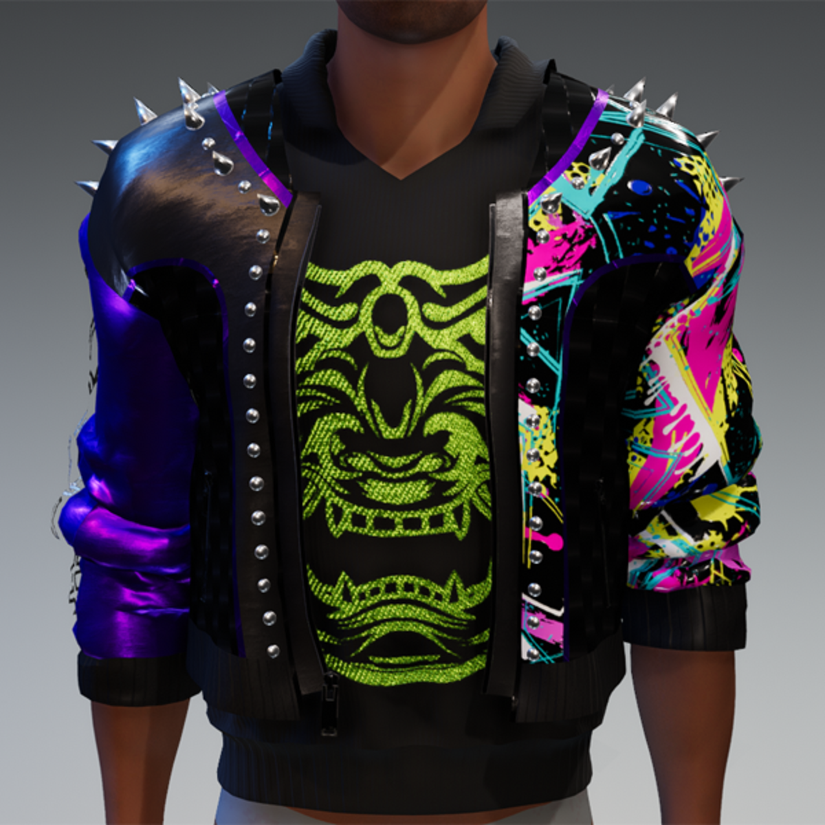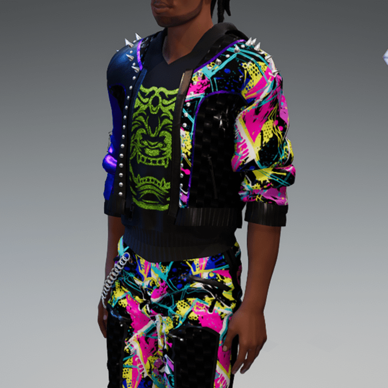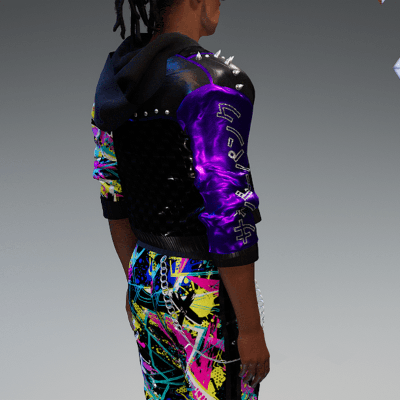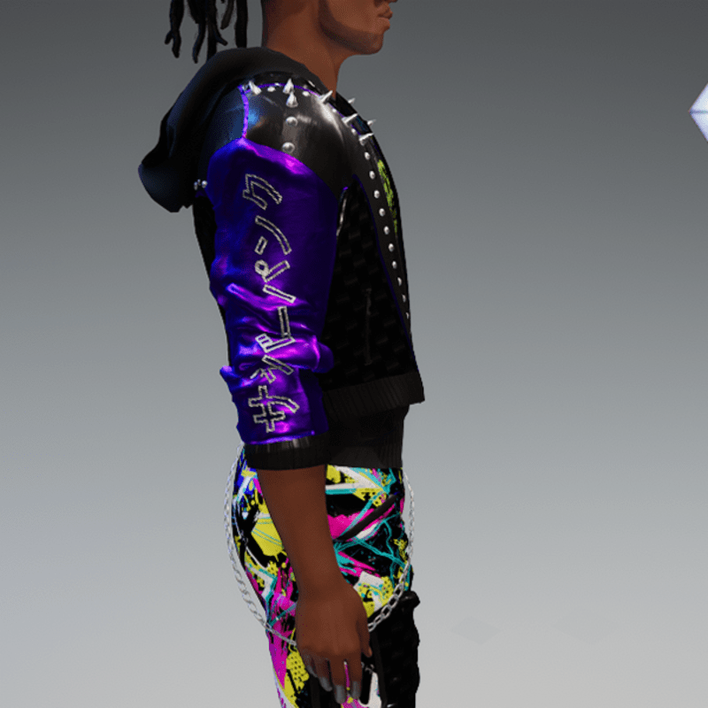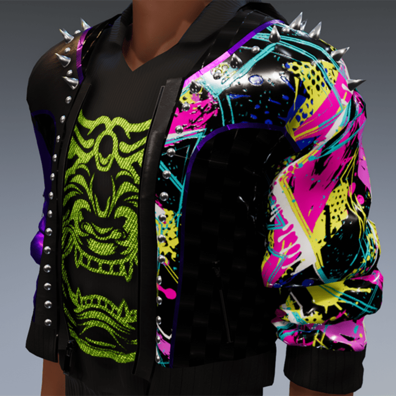 this leather jacket is inspired by the awesome "cyberpunk" game. It comes with a samurai print on the front and on one side as well as the word "cyber punk" in japanese on the other side and some rivets. Enjoy <3