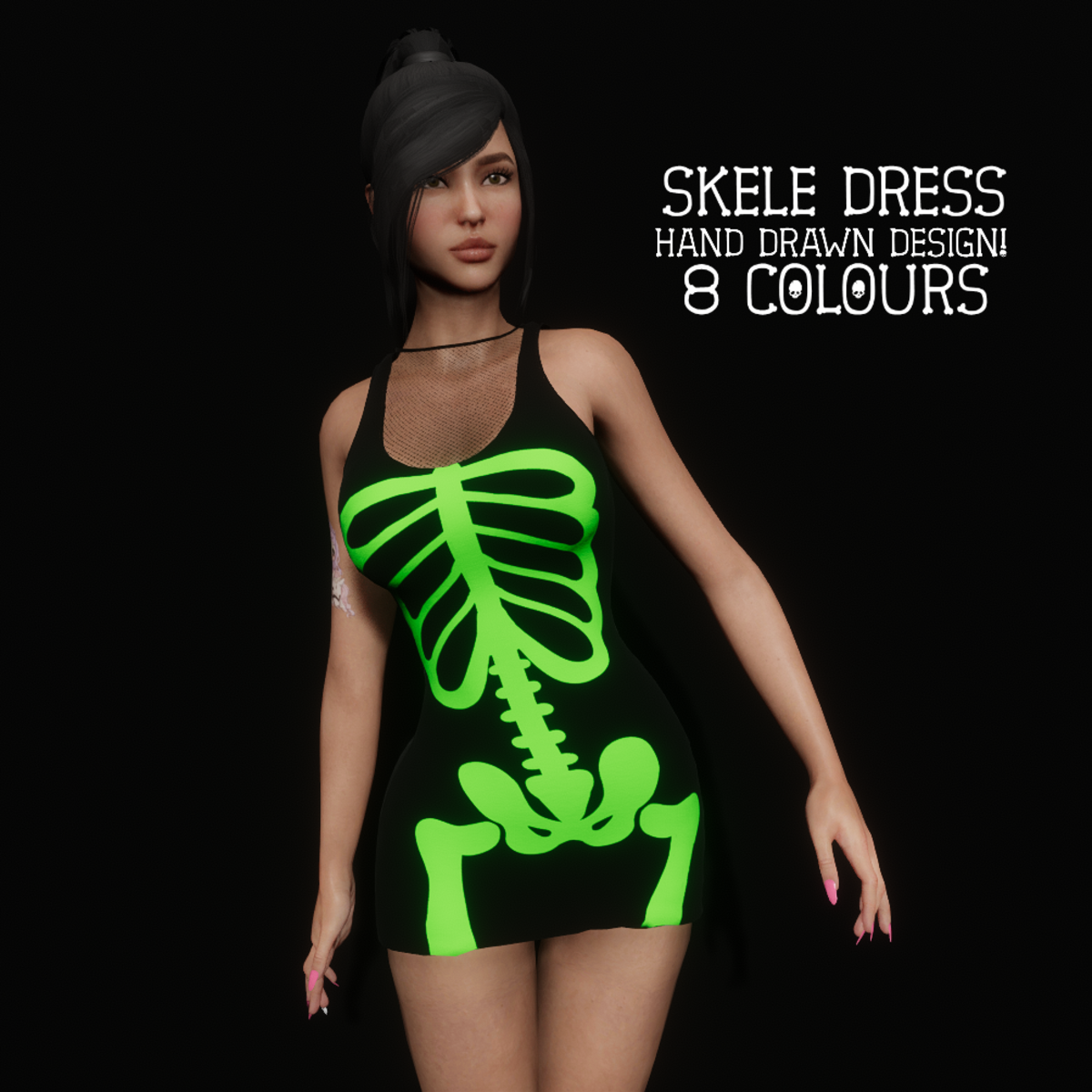 Get your spooky on with this skeleton dress! Perfect for Halloween! High quality textures, hand drawn too! Has beautiful normal map on it as well.