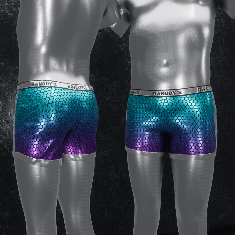 High quality boxer briefs made of realistic metallic hexagon material with logo on the waistband, readdy for avatar 2.0. Please don´t forget the ratings ;) Feel free to simulate the clothes before wearing it to adjust it optimally. Visit my store inworld: https://atlas.sansar.com/experiences/randdy/rr-fashion-shop