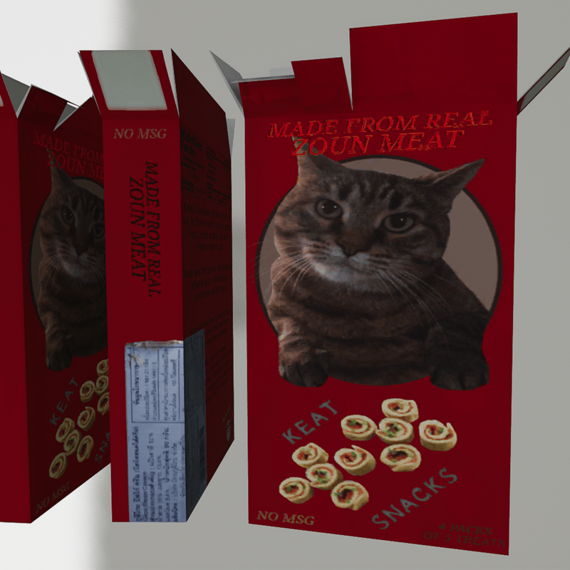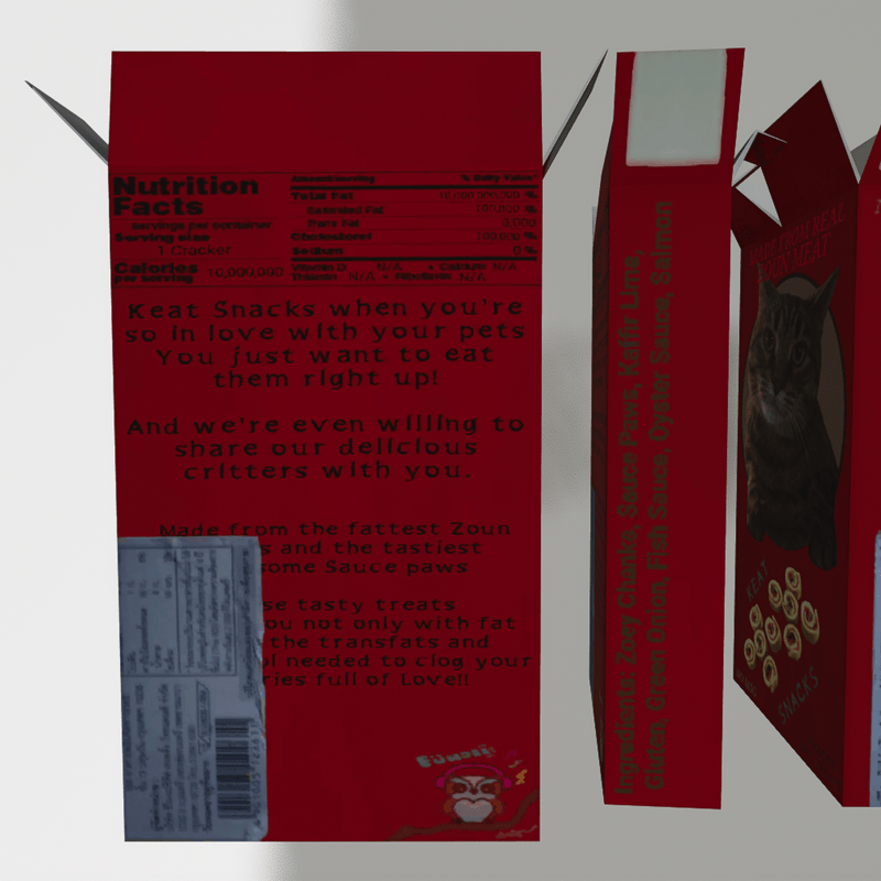 Snack Box ~~Can be seen in Fundee Design Experience~~ https://atlas.sansar.com/experiences/darkfyrealgoma/fundee-designs This is a tasty treat made of our fluffy cats. We loved them so much we just wanted to eat them up, and now you can too! ---> Look for Full perm Version on market for resale which includes UVmapping .psd!!!!