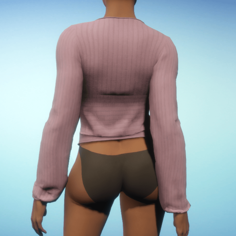 - Ribbed V-Neck Top - Pink Cotton