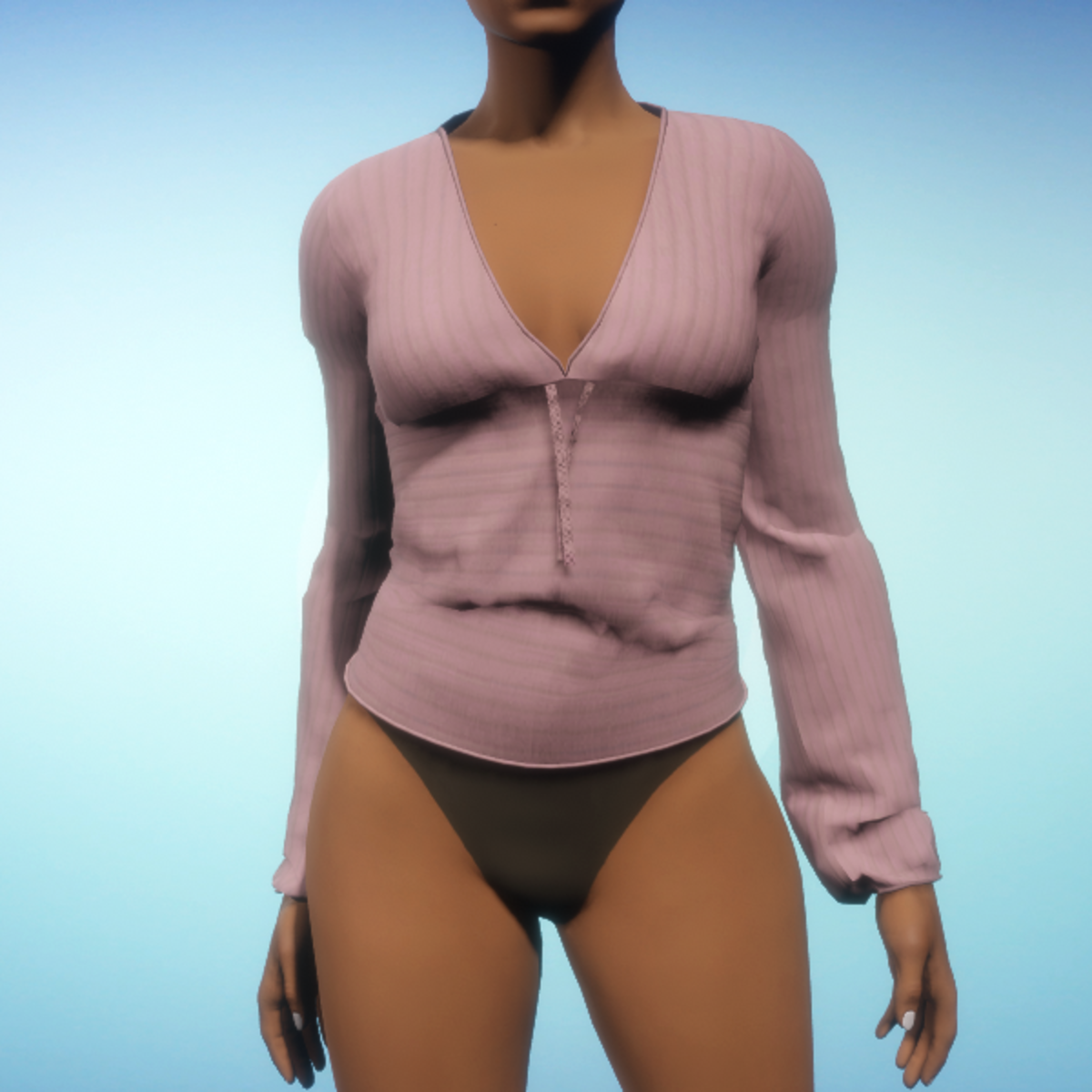 Ribbed V-Neck Top - Pink Cotton