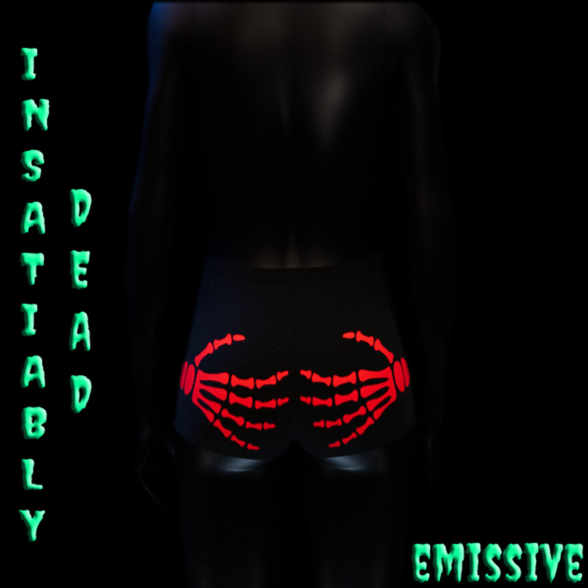 EMISSIVE SKELE HANDS SHORTS RED.[EMISSIVE MEANS I GLOW! PLEASE NOTE THAT ACTUAL COLOR/VIBRANCE WILL VARY BASED ON LIGHTING. FOR THE BEST RESULT WEAR IN AREAS WITH LOW LIGHTING.] CREATED IN MARVELOUS DESIGNER WITH AVATAR 2.0. ADJUSTMENT MAY BE REQUIRED! FITTING INSTRUCTIONS CAN BE FOUND BY GOING TO THE LINK BELOW. https://help.sansar.com/hc/en-us/articles/115005693363-Fitting-Marvelous-Designer-clothing-to-your-avatar PLEASE RATE AFTER BUYING! IF ANY ISSUES OCCUR PLEASE CONTACT TEAGAN BROKKEN FOR ASSISTANCE. THANK YOU! <3 <3 GET INSATIABLY DEAD <3