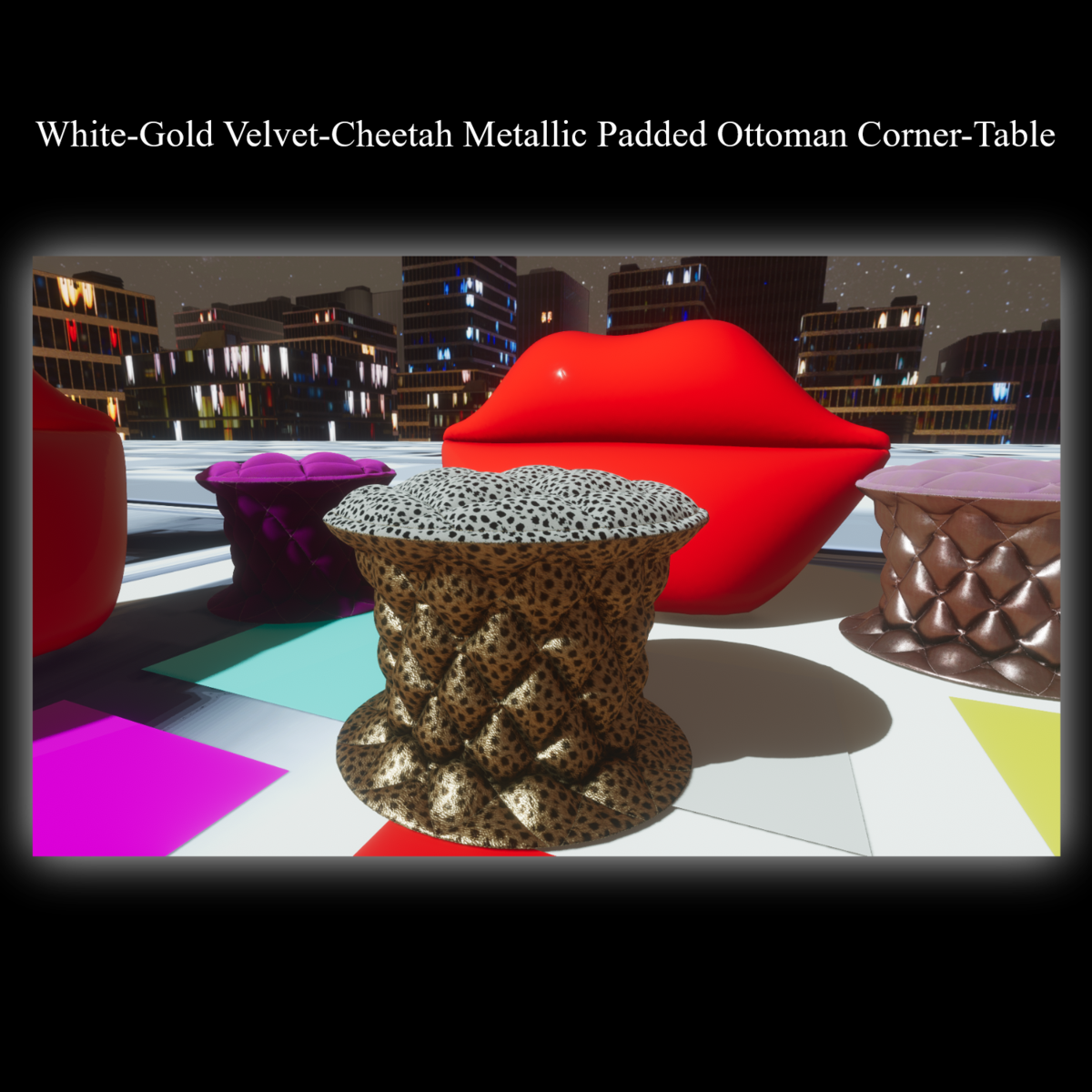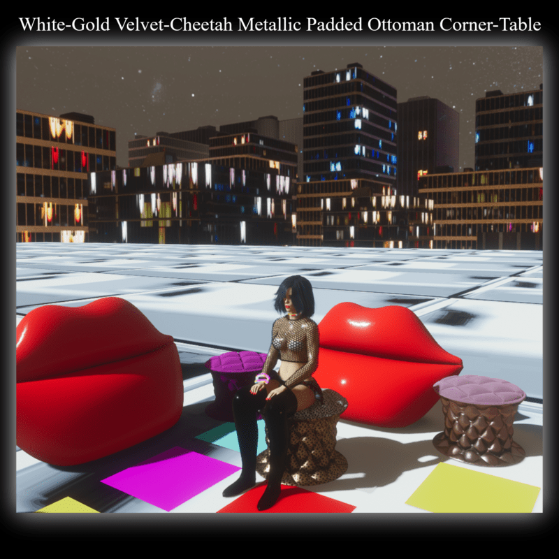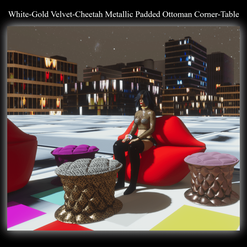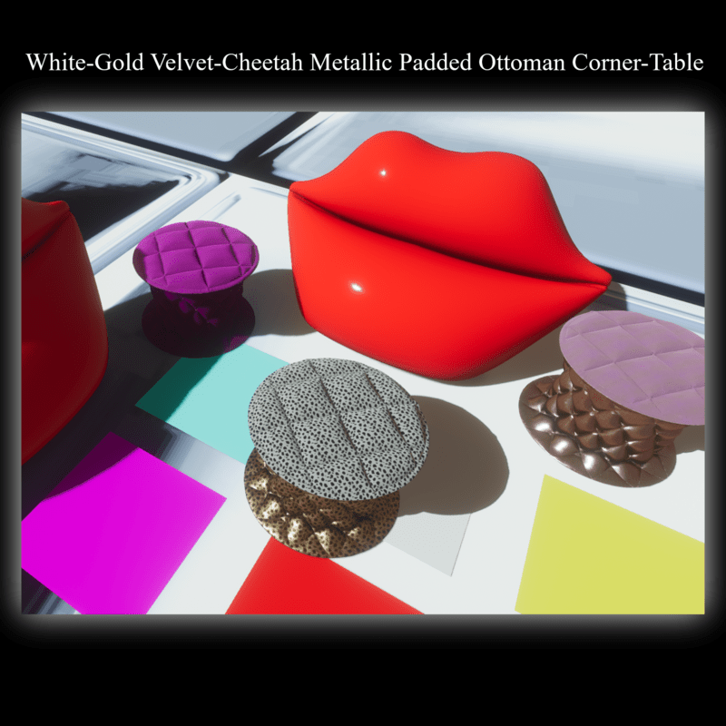 - White-Gold Velvet-Cheetah Metallic Padded Ottoman Corner-Table